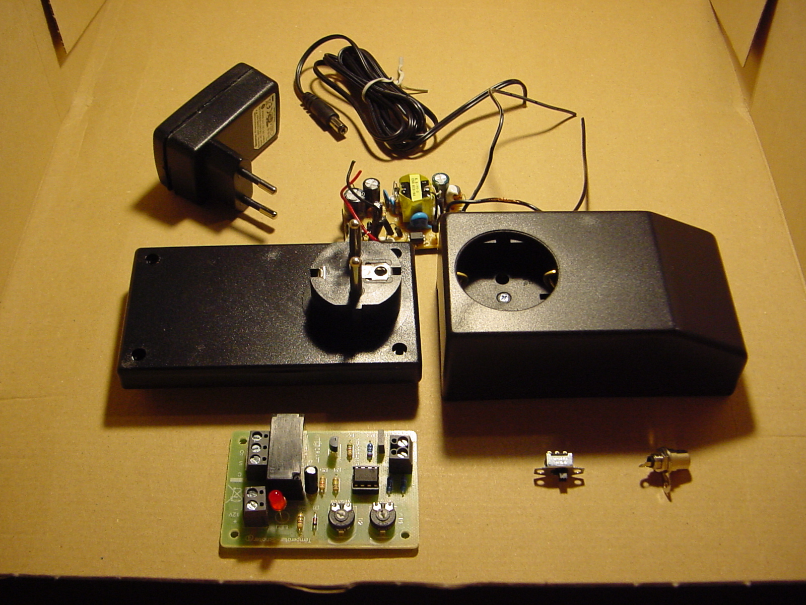 Das fette Spiral-Ladekabel ist noch serienmäßig, der weiße Schukostecker ist vom Batterie-Heizkabel, und die schwarz-rot Litze in der Tüte ist von einem PTC, der direkt neben dem Temperatursensor meines Solar-Thermometers mitten in der Batterie steckt. Da will ich jetzt doch mir einen Netz-betreibbaren Thermostaten konfektionieren. Darüber werde ich aber erst zu einem späteren Zeitpunkt berichten, das Zeug ist erst bestellt.