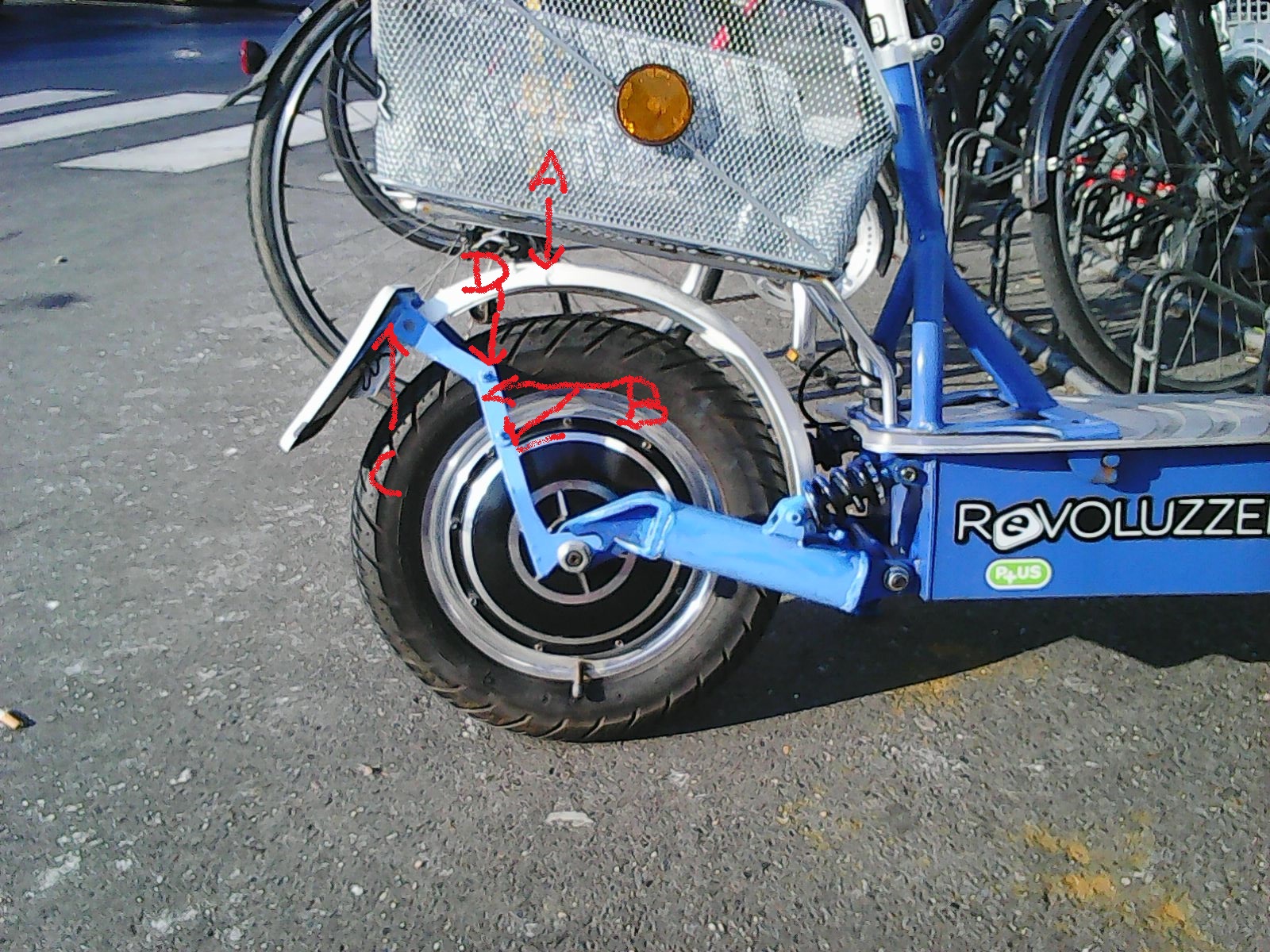 Pfeil zu A: Hier wurde die Schutzblechverlängerung (überlappend) angebracht und angeschraubt.