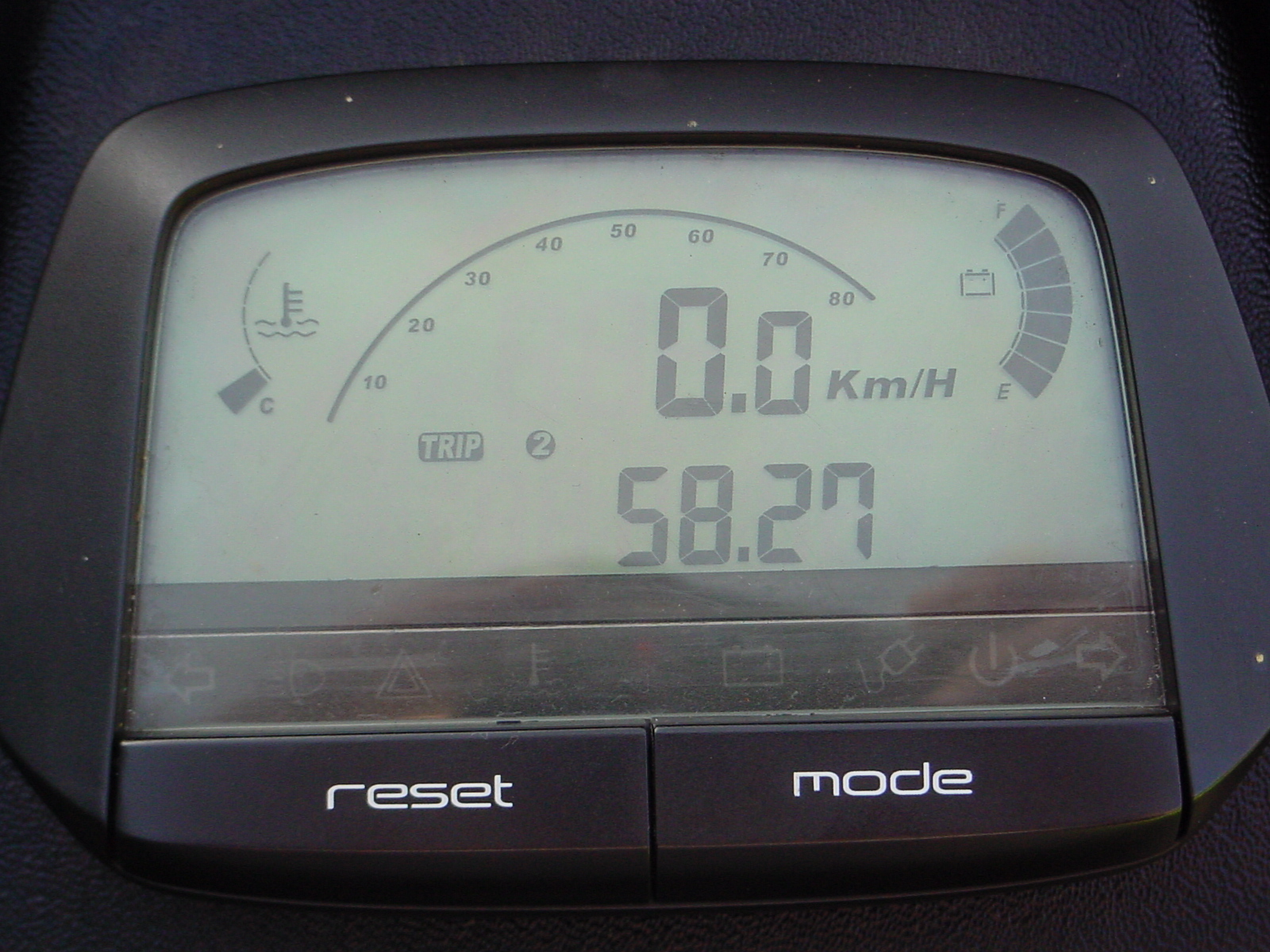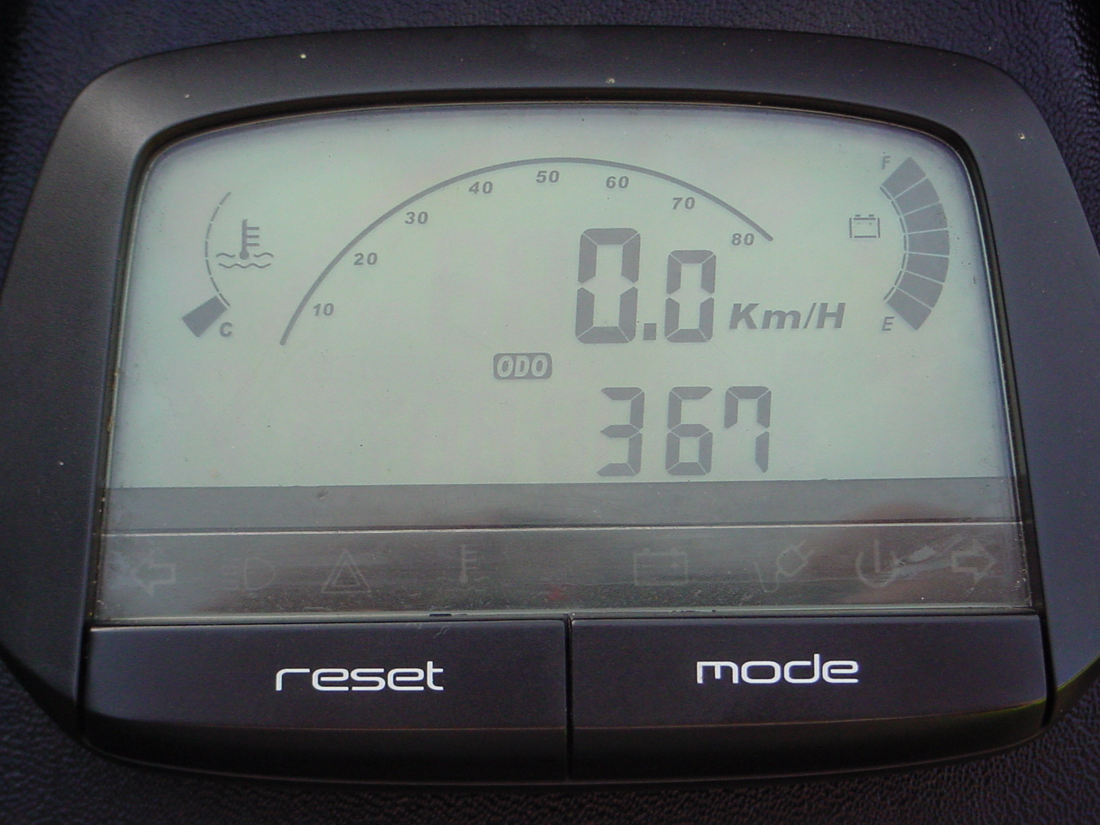 Modus 1 zeigt unten den Stand vom Tageskilometerzähler 1 an. Mit längerem Druck auf den reset-Knopf kann genullt werden. Auch Modus 4 und 5 hängen am Tageskilometerzähler 1 mit dran.