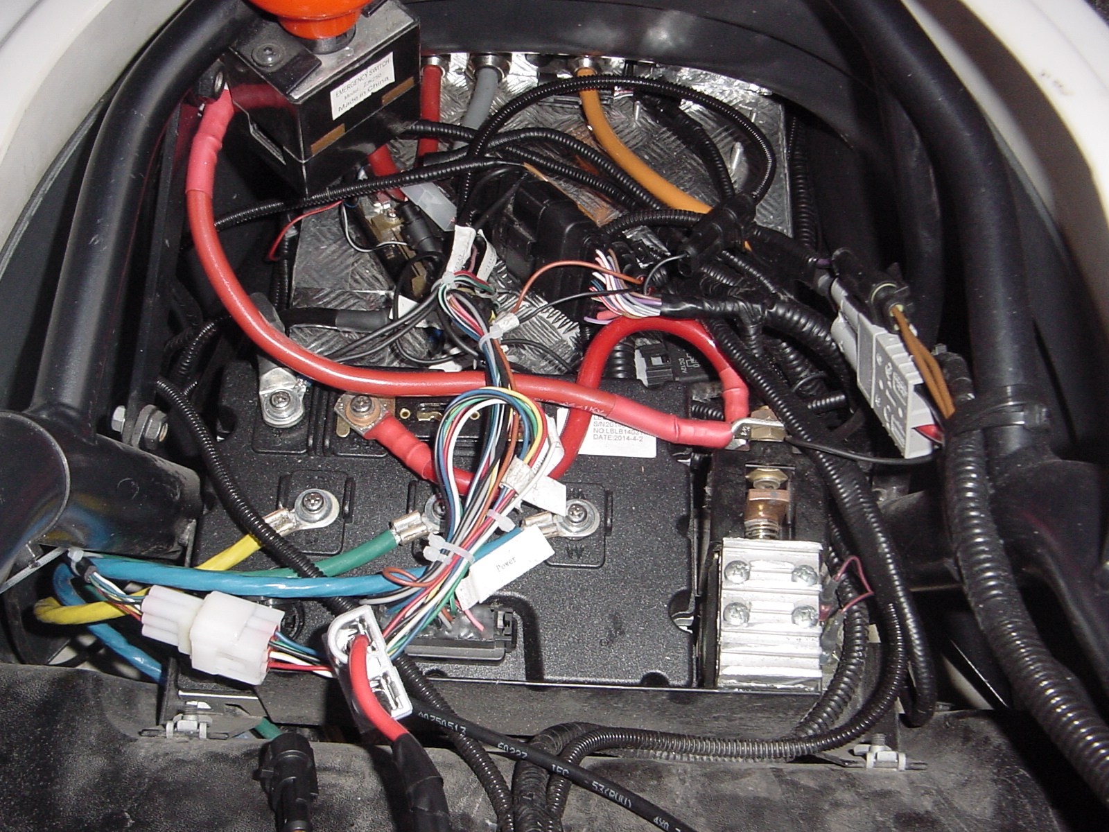 Solenoid (mit d) ist der Englische Begriff für ein elektromagnetisch betätigtes etwas, speziell die Spule. Aus meiner Sicht ist es das in Alu gehäuste Teil rechts unten in meinem Bild und wird auf Deutsch als Schütz bezeichnet. Ein Monster-Relais quasi. Eine Soft-Ladeschaltung hätte ich liebend gern auch dort, kann aber nichts dergleichen erkennen. Bin gespannt, wie lange das die Eingangskondensatoren meines Lingbo/Goldenmotor Contollers mitmachen...