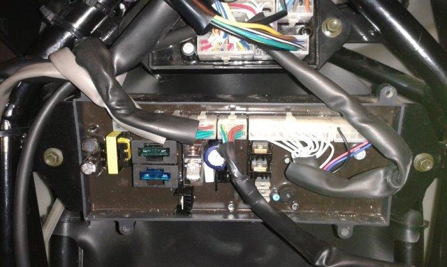 Die kleine Platine ist ein Interface (Kabelsortierstecker). Der Sevcon Controller sitzt unter der Zwischenplatte unterm Sitz. Sendet die LED auf dem Sevcon einen Blinkcode?