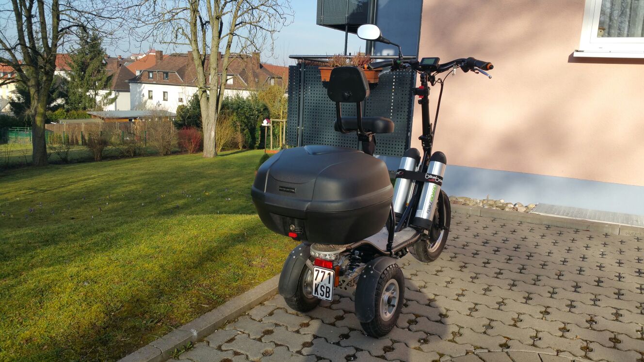 Irgendwie erinnert mich Peters Dreirad an ein Space Shuttle mit seinen beiden Boosterraketen an der Seite.