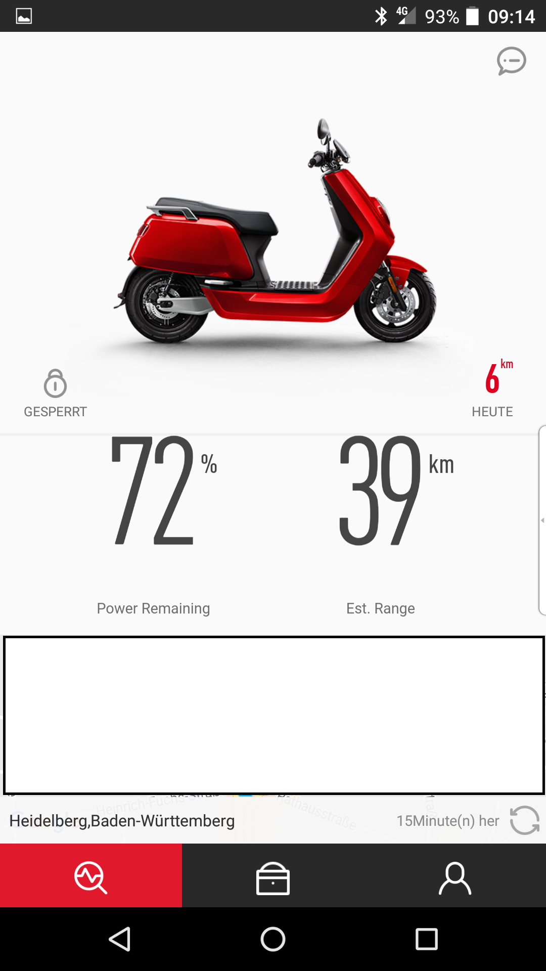 Die Smartphone-App hilft dabei, falls die Freundin sich den Roller für eine "kurze Fahrt" geliehen hat und man den Akku für den nächsten Tag besser laden sollte, man sieht man den minutenaktuellen Ladestand der Batterie und die verbleibende Reichweite.