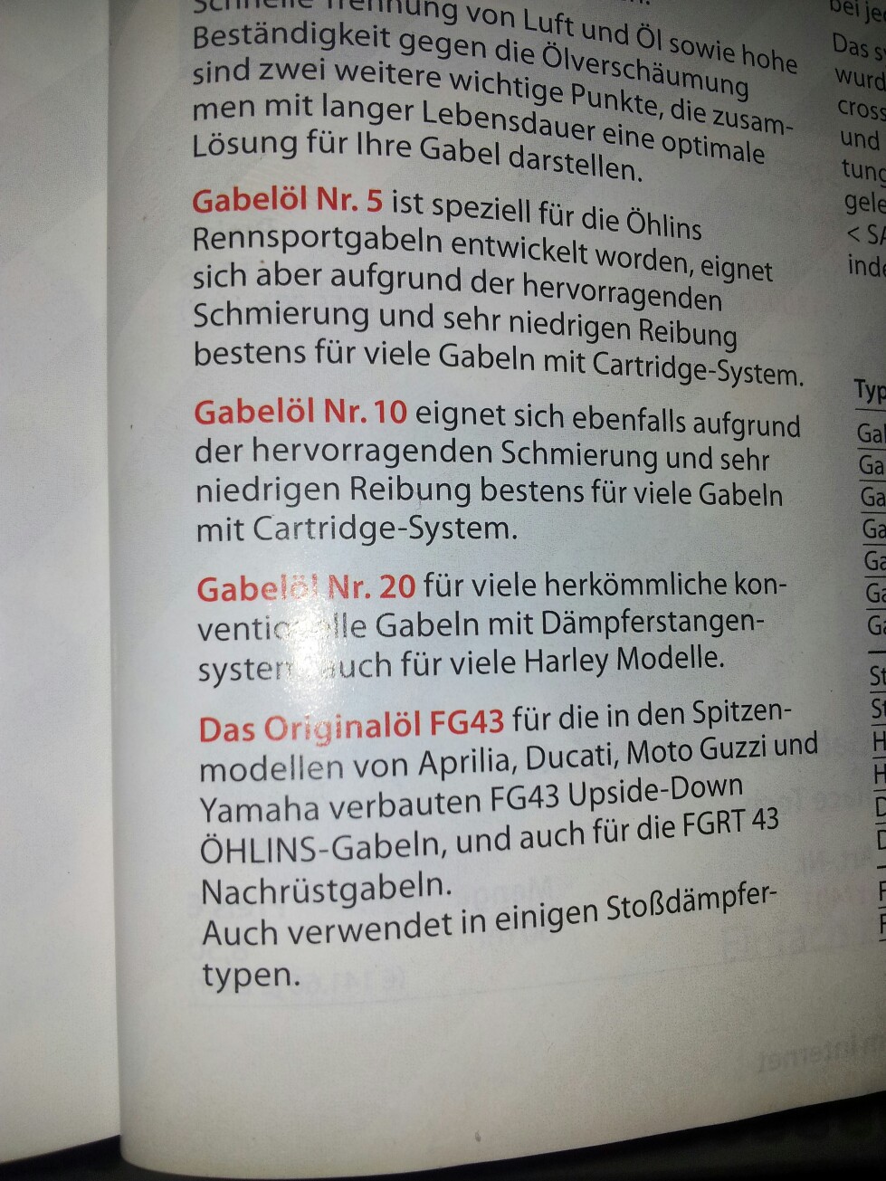 Õhlins macht sicher auch gute Gabel Öle Ich werde das bei Gelegenheit mal austesten.