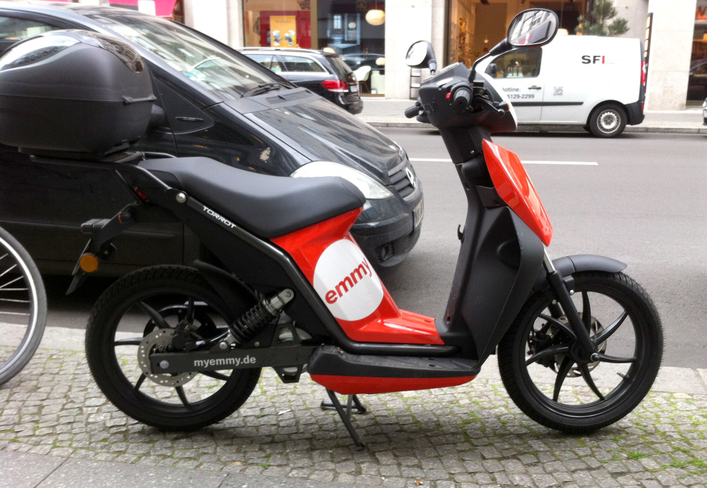 Bei einem Besuch in Berlin-Mitte fiel mir neben einigen Coup-Gogoros und dem ein oder anderen Unu auch ein Torrot Muvi mit Emmy-Logo auf: