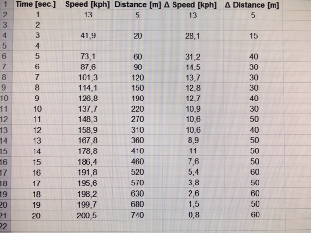 Aber wie auch zu sehen in der Tabelle hatte er die letzten 5 Sekunden gnaz schön zu kämpfen um noch ein paar km/h schneller zu werden. Denke das dort das Ende der Fahnenstange vom Motor bezogen auf die 175VDC bzw. 169VDC nach dem Lauf erreicht war!