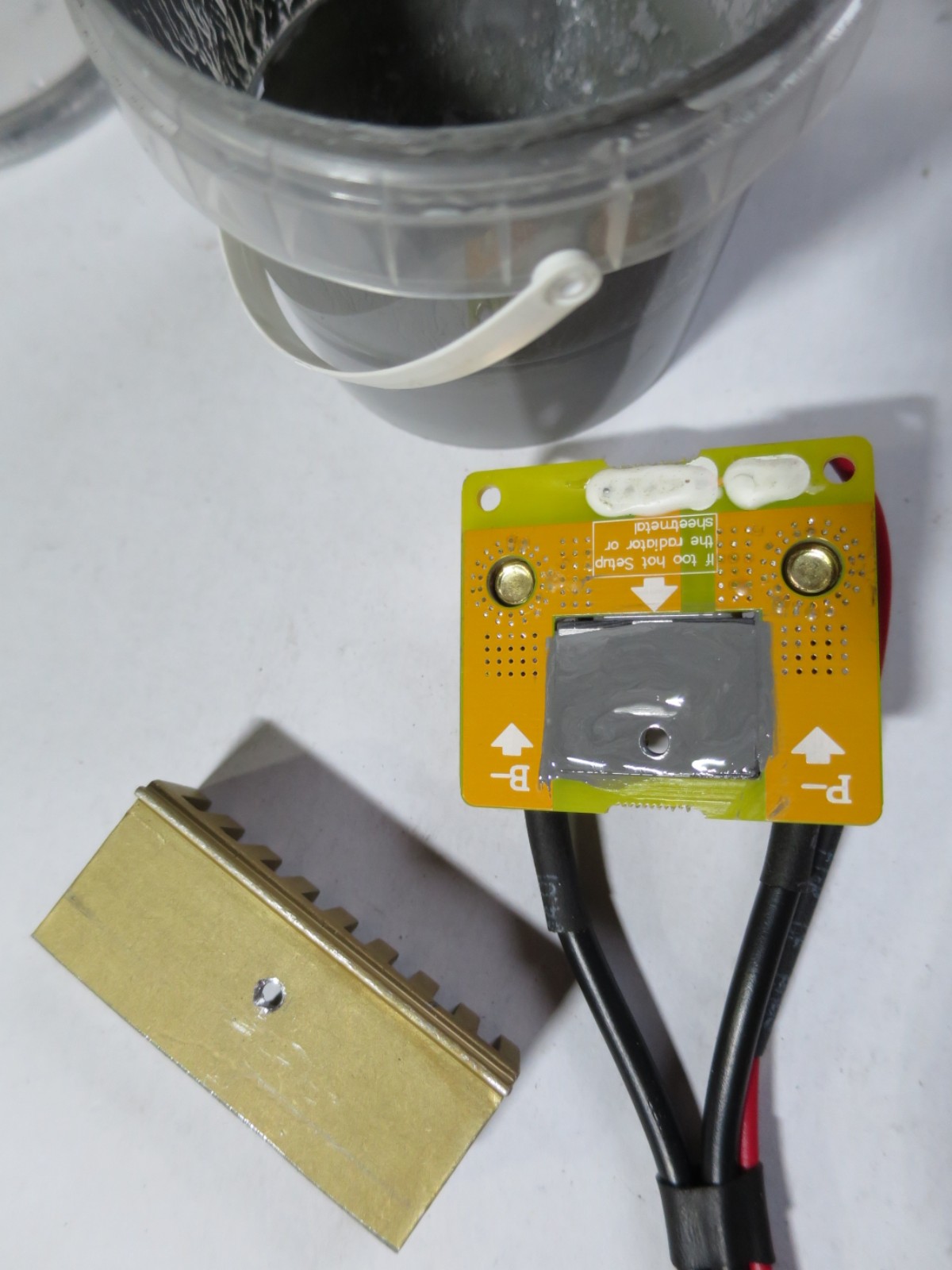 Ein Kühlkörper zurechtsägen und mit reichlich Wärmeleitpaste an dem Shunt anschrauben.