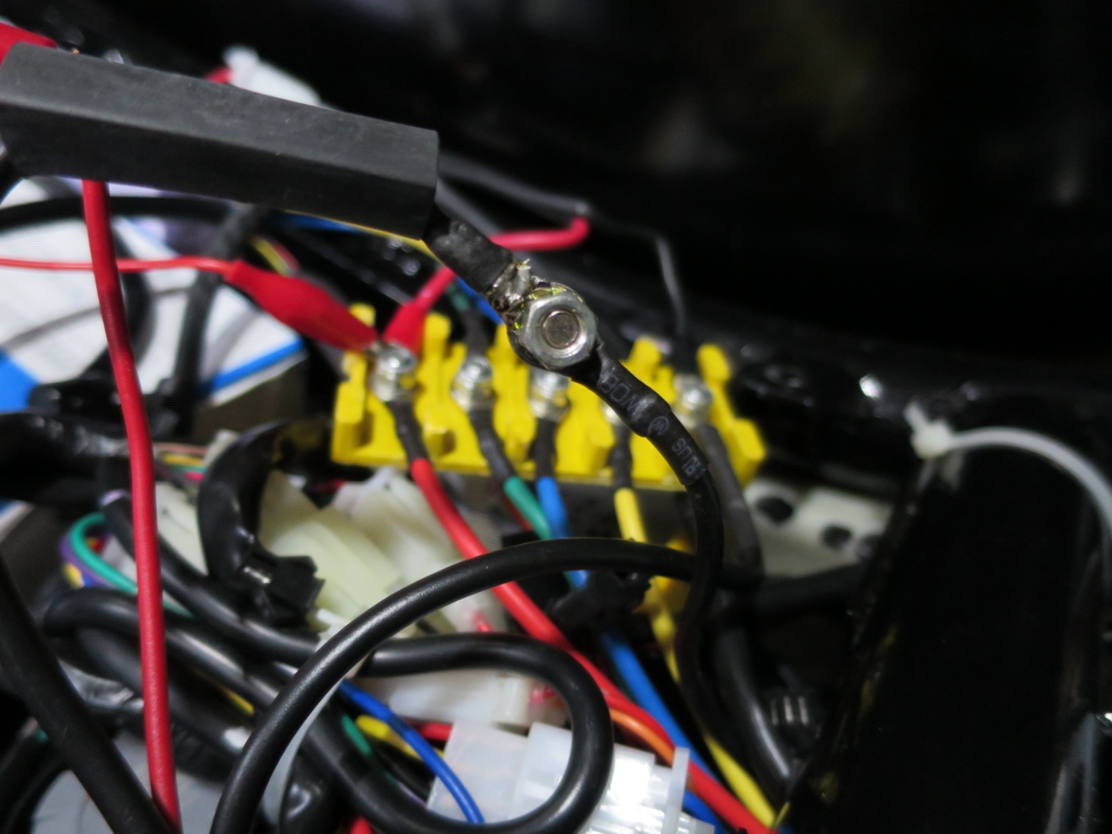 Mit Schrumpfschlauchstückchen zu einem Kabelstrang fixieren.