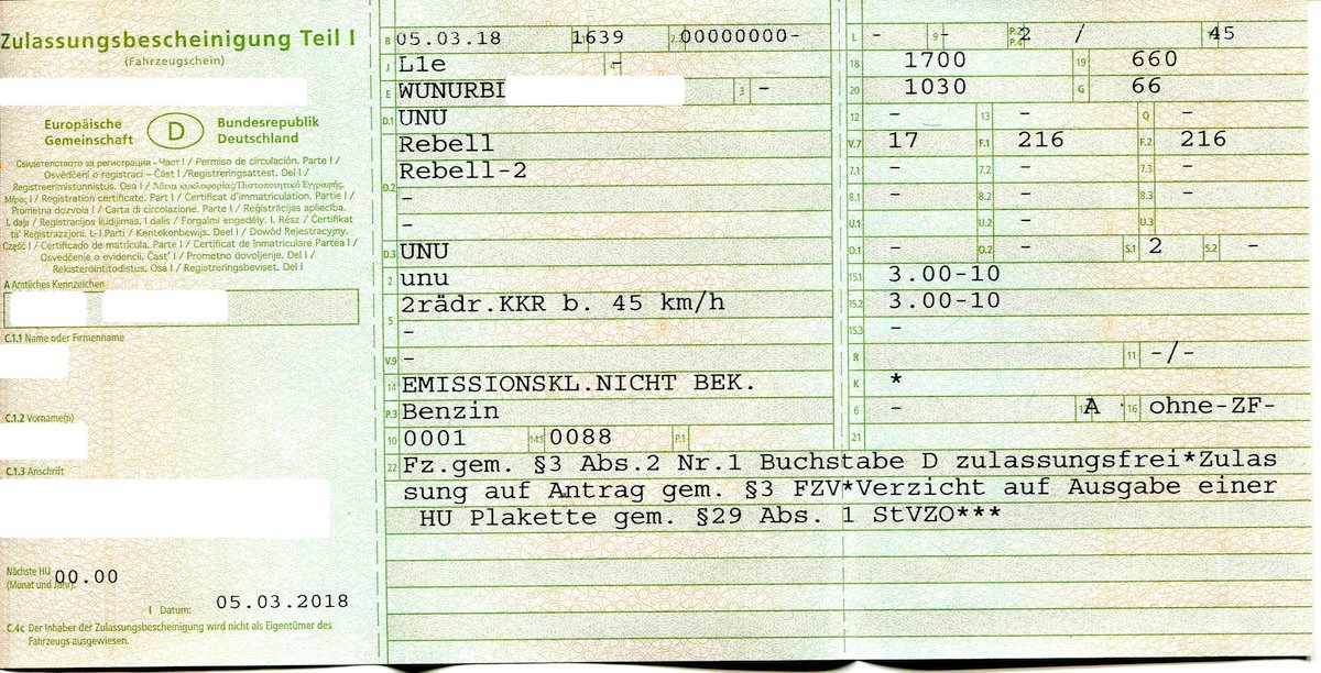 So ist es. Das Kennzeichen muß jetzt nicht mehr jedes Jahr gewechselt werden. Und das Moped ist jetzt wie eine 125er versichert. Mehr schreibe ich aber nicht mehr dazu.