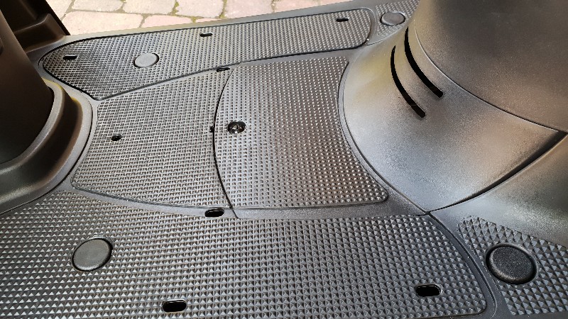 Ich habe passende Kappen gefunden, um die häßlichen Schraubenlöcher im Boden des Fussraumes abzudecken, kosten ca 4€ und gibts in jedem Baumarkt. Habde die Stopfen jeweils mit wenig Einkomponentenkleber fixiert. Wasserdicht solkte man das sowieso nicht verkleben, wg Kundendienst und Rost.