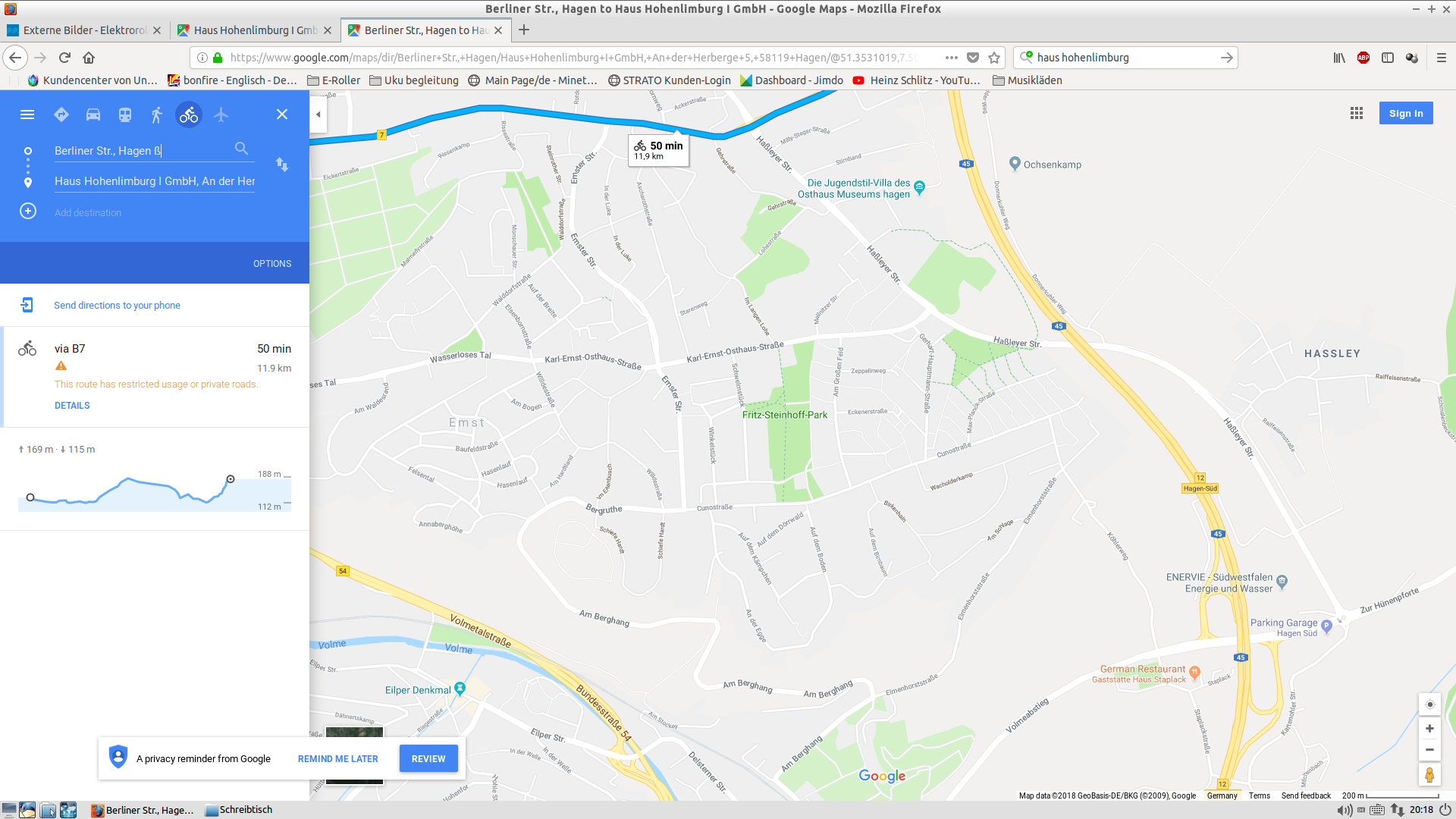 Die 80 Meter Höhenunterschied sind falsch, sorry. Es waren bei der Hinfahrt 169 Meter nach oben und 115 Meter runter.