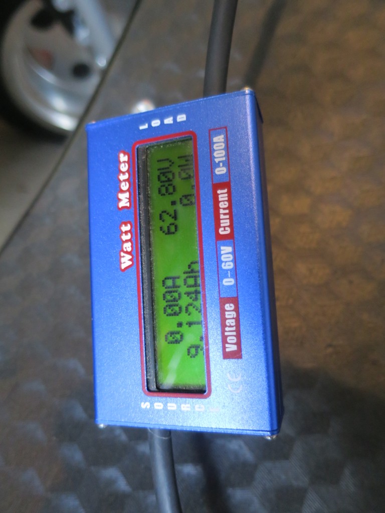 Die Akkukapazität lass ich erstmal bei 20Ah. Ich weiss nicht ob das Messgerät verrückt spielt, wenn ich mal ein bisschen mehr als 15Ah aus dem Akku ziehen muss.