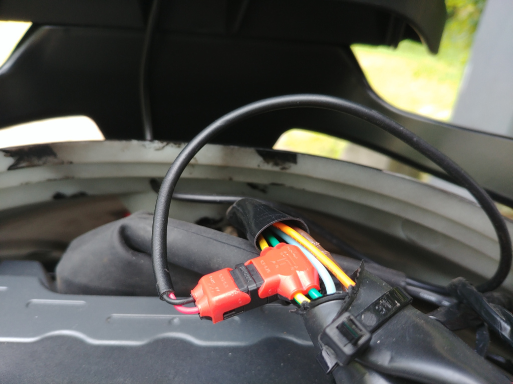 "Stromdieb" für das zusätzliche Bremslicht (Grün Masse, Gelb/Grün 12V Bremslicht).
