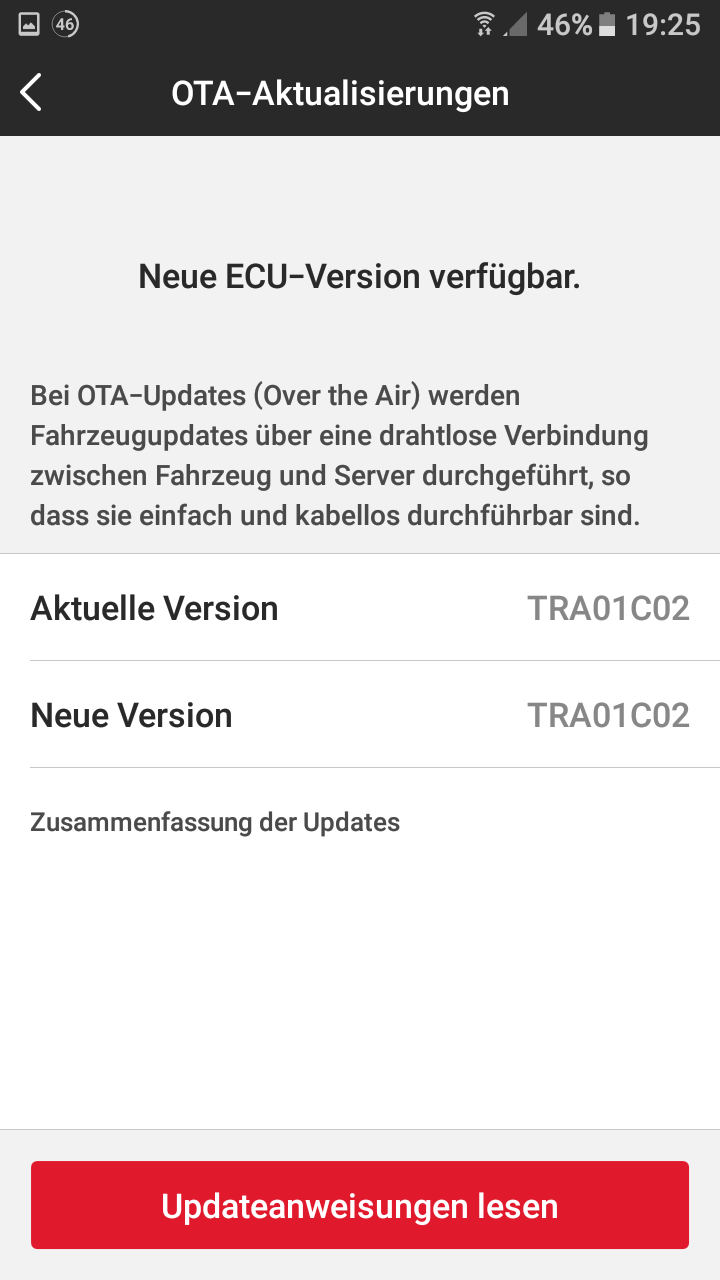 Mein Händler konnte mir helfen und nun habe ich TRA 01C07 welche auch OTA updatefähig ist.