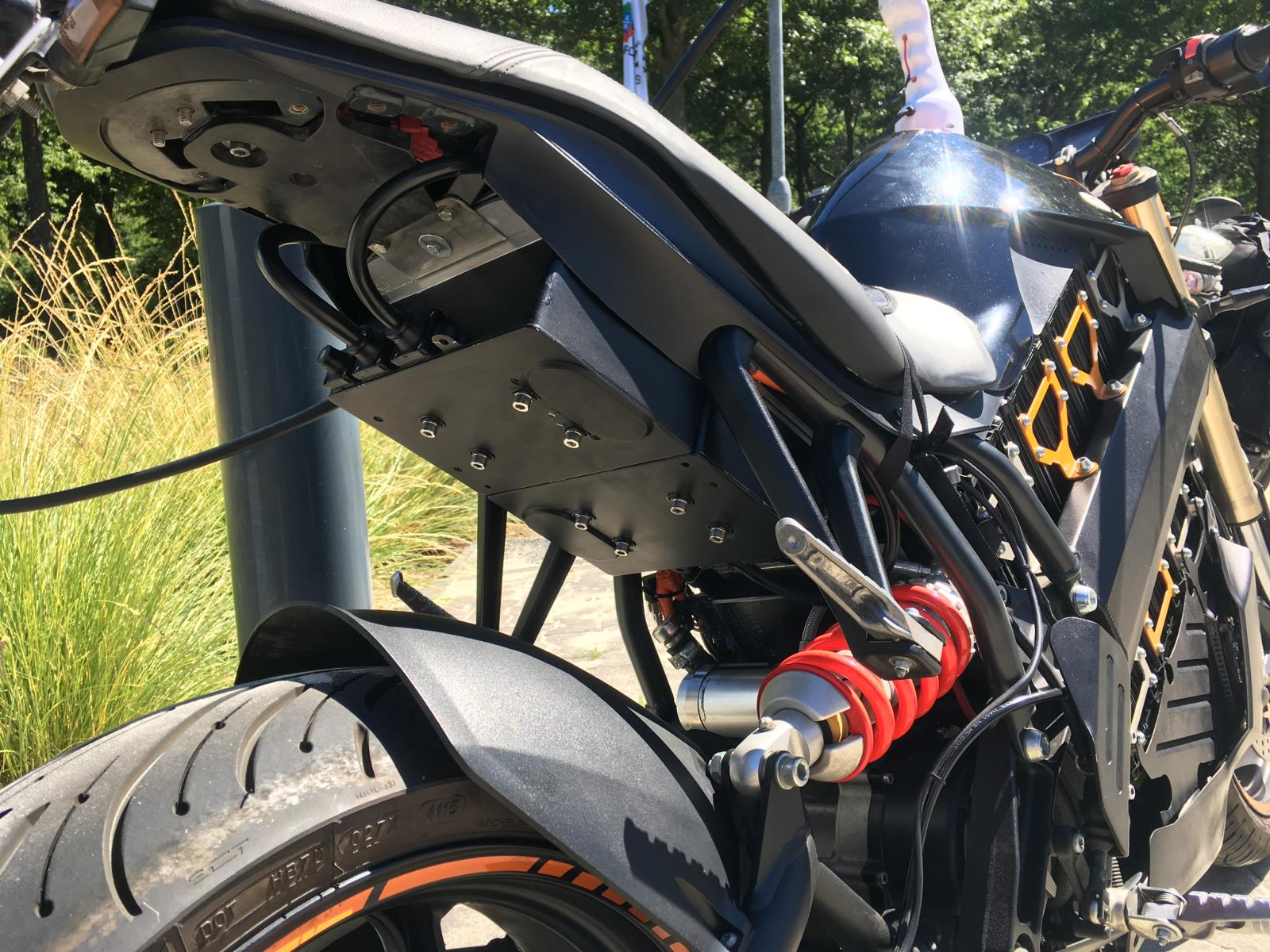 Gemeinsam mit Christian, Zweiradmechaniker und Brammo-Fahrer, haben wir eine Lösung kreiert die sich aus meiner Sicht absolut sehen lassen kann. Insbesondere bei der optisch sauberen Integration der Ladegeräte und beim Kühlsystem hat Christian ganze Arbeit geleistet. Wir haben uns im Gegenzug mit der sicheren elektrischen Integration beschäftigt und geeignete Ladegeräte ausgewählt und konfiguriert.