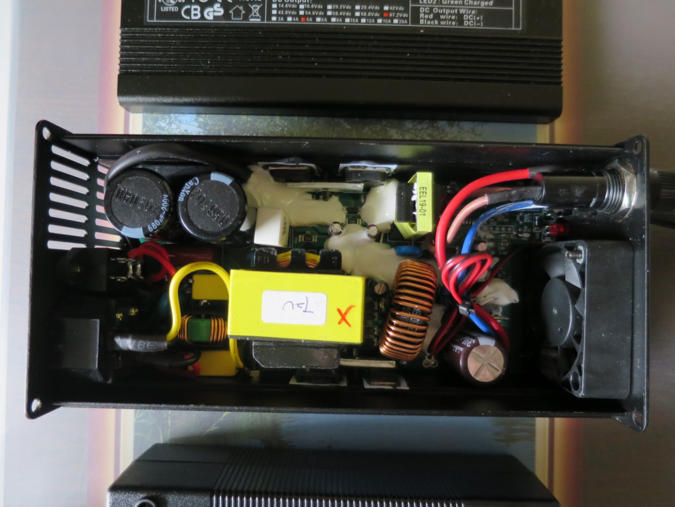 Da ich lieber die Kontrolle darüber habe, was für Spannungen und Strom das Ladegerät liefert, habe ich noch ein entsprechendes Messinstrument eingebaut.