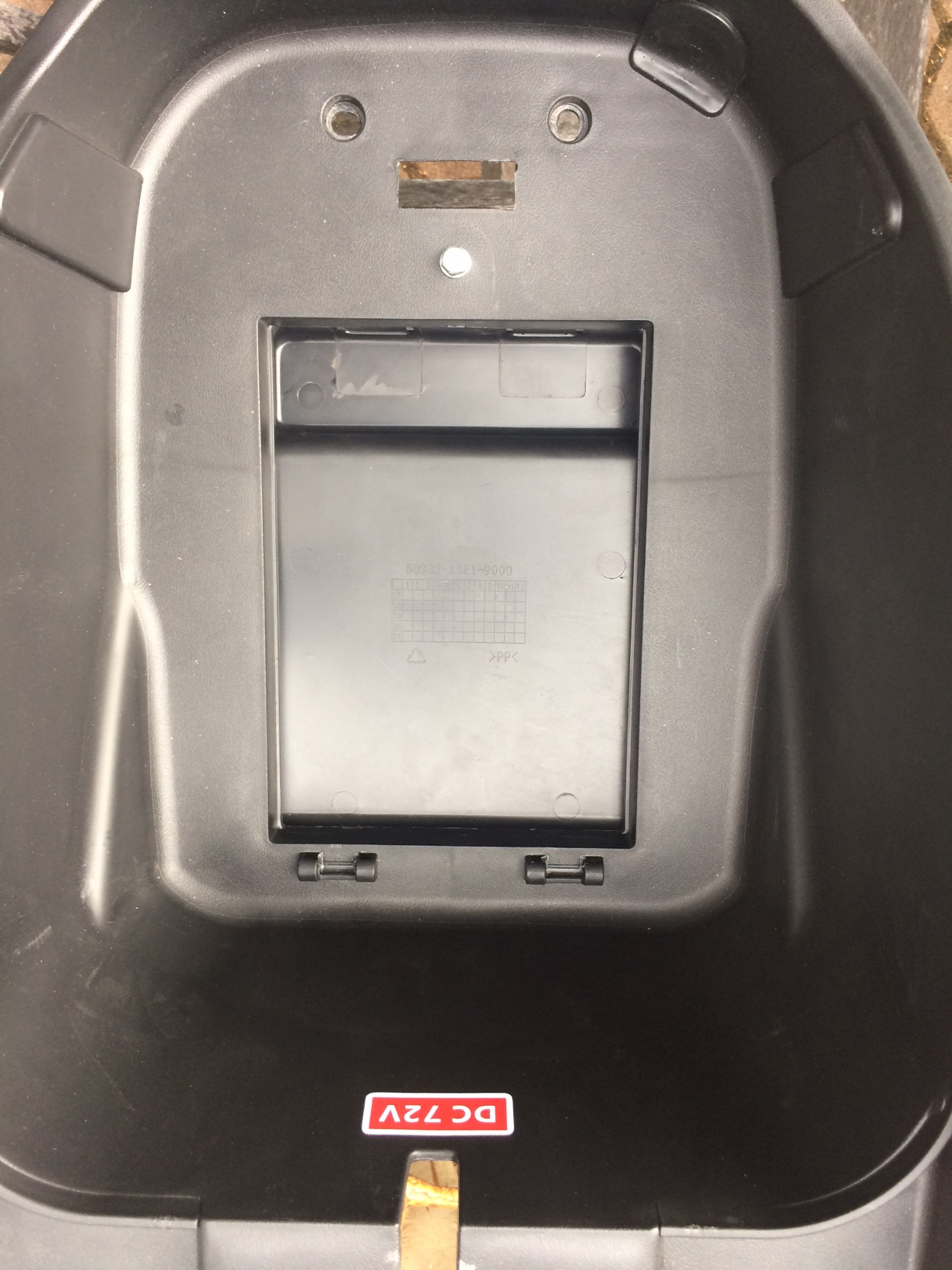 Zum Vergrößern des Helmfachs habe ich jetzt erstmal den inneren Deckel abgenommen, von unten auf die Öffnung gesteckt und mit der einen Schraube wieder fixiert. Ist schon mal besser als nichts.
