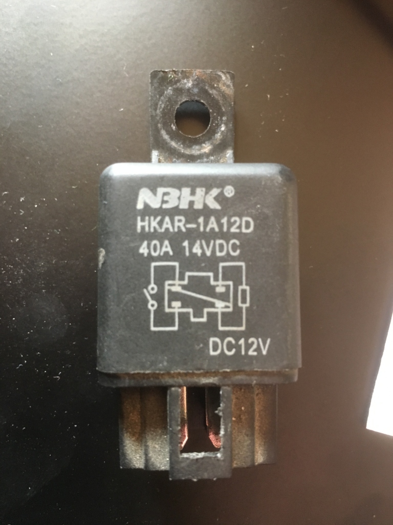 Der vR one in der Geschmacksrichtung "HV Kilian mit Golden Motor Umbau" versorgt über den Reku-Umschalter auf Stufe I ein 12V PKW-Relais mit nur 5V Spannung (ja, das geht, wenn auch etwas zögerlich), und dieses verbindet das blau-weiße "Brake +5V" Kabel vom Linbgo Controller mit dem schwarzen "Brake GND" Kabel, was ihm dann scheinbar den Wunsch nach bremslichtgesteuerter Rekuperation übermittelt.
