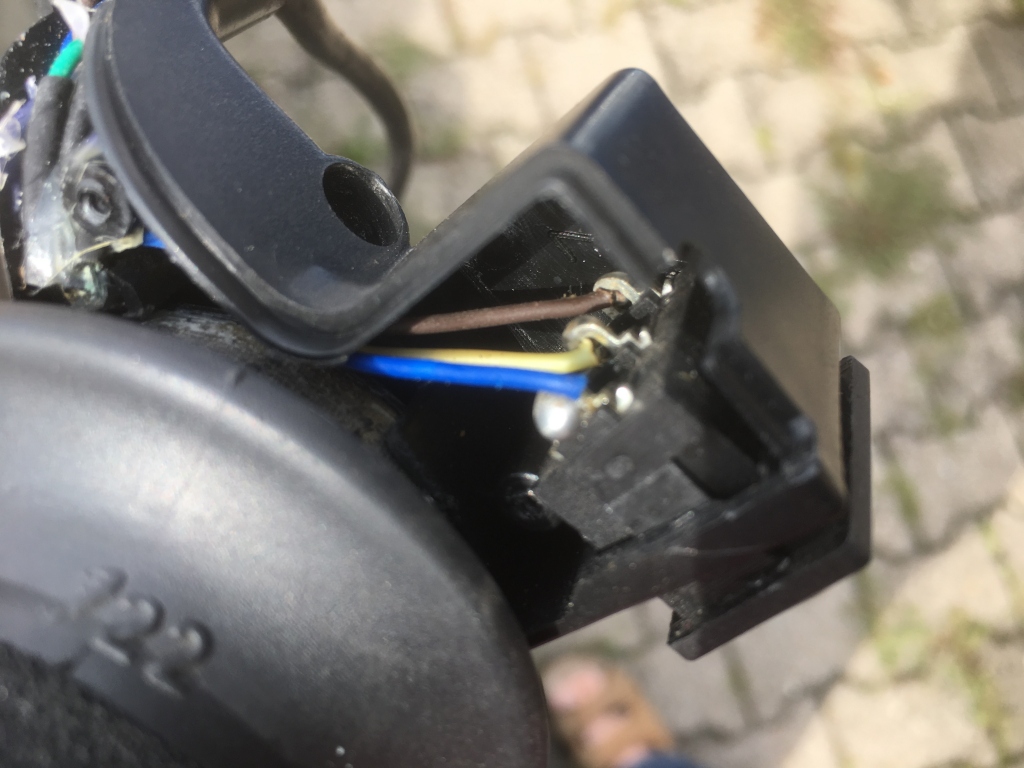 D.h. die Wasserempfindkichkeitt des I O II Wippschalters hat keine direkte Auswirkung auf den Brake Eingang, da durch Relais getrennt. Jedoch hat die kurze Spannungsspitze beim Durchschalten des Relais machmal ausgereicht, um dem aus dem Lingbo-Stecker teilweise herausgerutschen "Brake +5V" Kontakt wieder solchen zu verschaffen, wenn auch oft nur kurz.