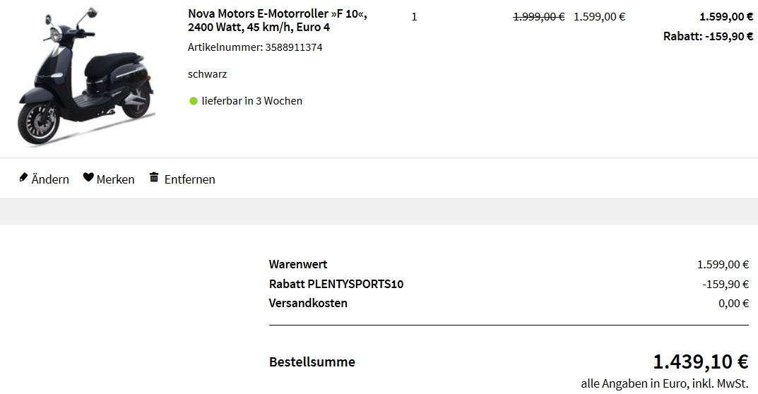 Dafür rechne ich aber in den nächsten Tagen mit dem Eingang des Förderbetrags auf meinem Konto. Wenn das cashback noch kommt hätte ich für meinen Roller, Case, Schloss und Faltgarage 800 € bezahlt.