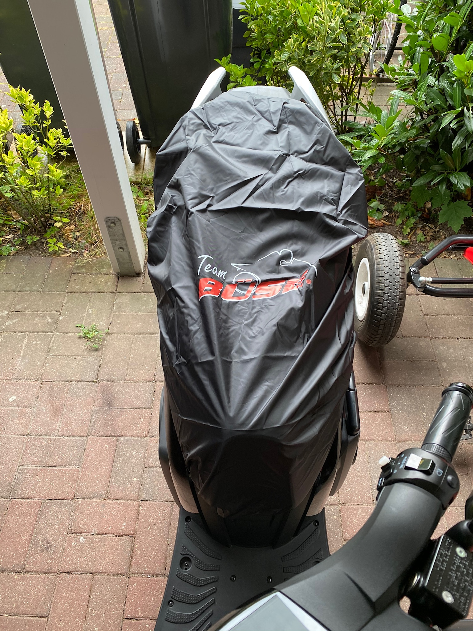 b) Der Roller wirkt mit kleinem Schild wesentlich wendiger im Handling als mit dem großen. Ich frage mich, ob das nur Einbildung ist oder mehr dahintersteckt. Der Eindruck meiner Frau ist genau der gleiche, ohne dass wir vor unseren Fahrten darüber gesprochen hatten. Sie ist auch mit beiden Schilden gefahren.