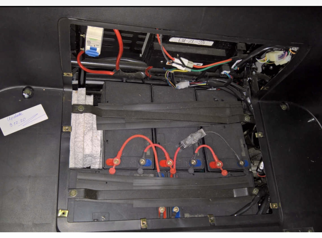 Danke. Ein dickes schwarzes Kabel ist vermutlich irgendwo unten rechts (kann ich erst am 10. Januar nachschauen). Und genau so ein Kabel, also gleicher Querschnitt und mit Ringkabelschuhen, suche ich, fertig konfektioniert.Peter51 hat geschrieben: ↑Di 28. Dez 2021, 08:57Ich zähle fünf 12V Bleibatterien - in Reihe geschaltet = 60V. Plus 60V hat man oben links am Sicherungsautomaten. An einem der vorderen Batterien geht ein dickes Kabel, welches zum Controller zum führt. Das ist der Minuspol. In diesem Kabel wird der Shunt (Strommeßwiderstand) eingeschleift.