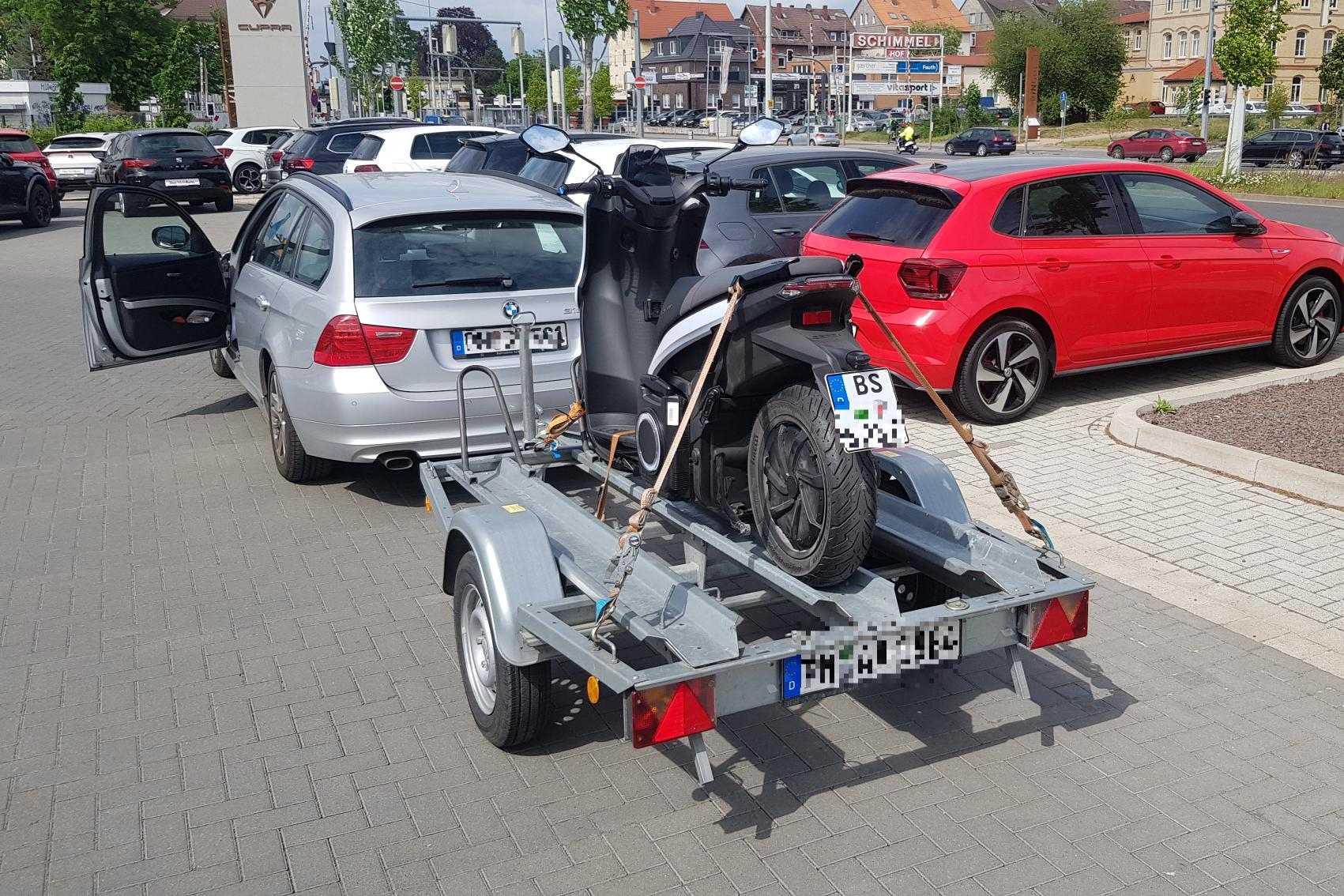 Ja zu 2. solltet ihr schon sein. Den Hänger angekuppelt lassen und den Roller über eine Rampe hochfahren oder schieben. Verzurrtips stehen ja im Faden.