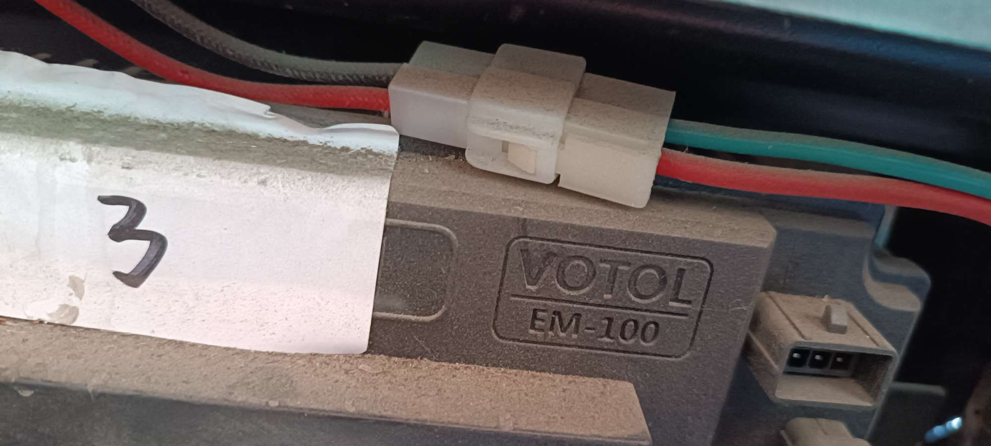 Schau mal nach, ob bei Dir der passende Vierfach-Stecker mit den Kabeln Pink, Blau, Orange, Schwarz am Controller-Kabelbaum ist.