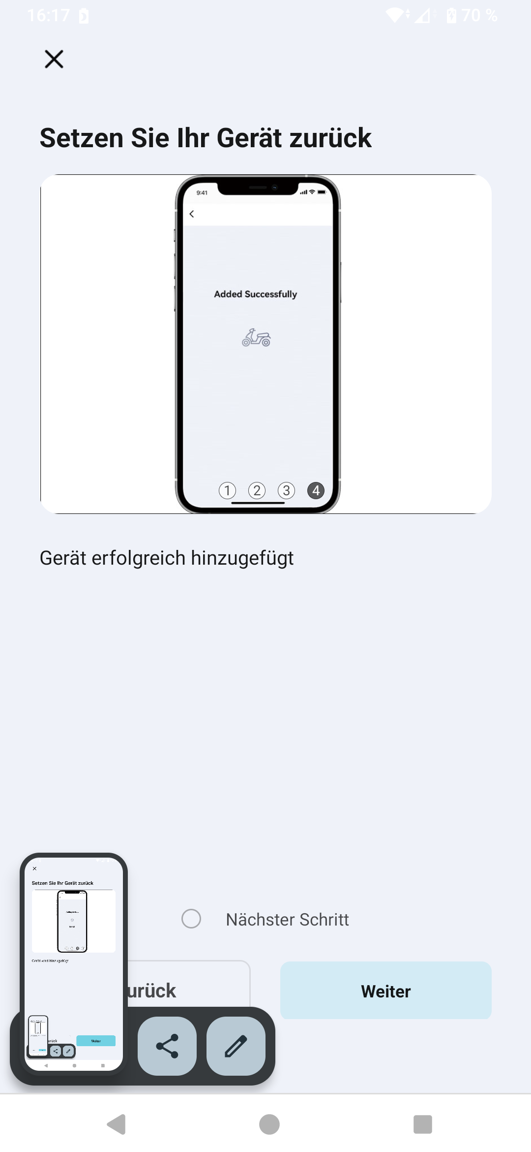 Den Roller kann ich im BT-Menü sehen, aber ich kriege auch dort keine Verbindung mit der Meldung "Verbindung fehlgeschlagen".