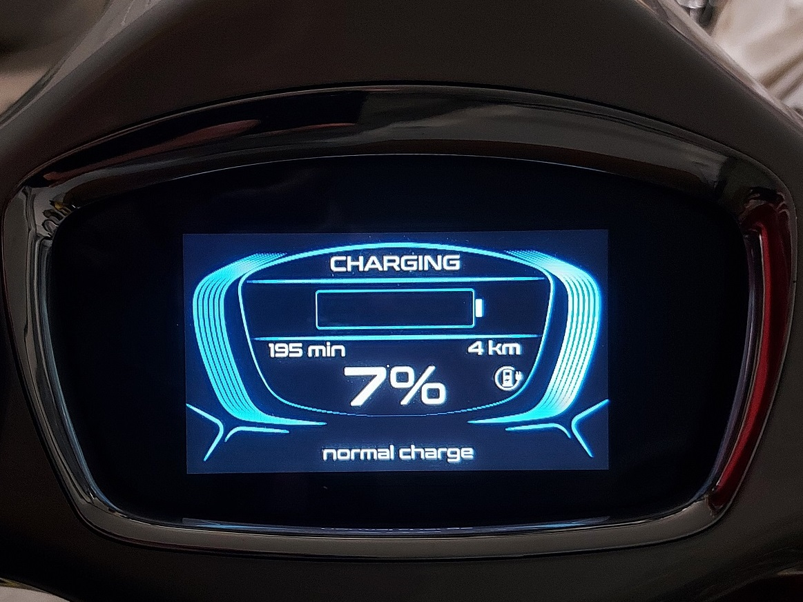 Eine Info zur Reichweite. Heute habe ich den Akku bis zur Grenze ausgefahren, was man eigentlich nicht tun sollte. Aber schieben ist auch keine Alternative. Ab 9% Anzeige verschwand das Batteriesymbol und die Elettrica wurde gedrosselt auf max. 35 km/h im Powermodus. Im Eco Modus fährt sie dann noch langsamer. So steht es auch im Handbuch, aber das liest man erst hinter her. Ich habe nur noch darauf gewartet, dass sie stehen bleibt. Eigentlich wollte ich noch ein Bild hinzufügen, aber das klappte nicht.