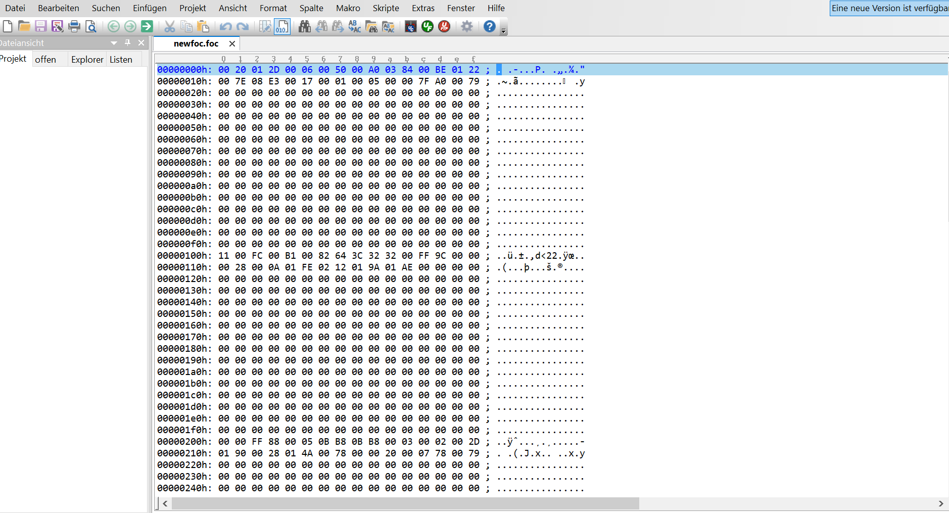 I have opened the foc file and see all the lines. My problem is the part on the right side next to the semicolon. There I cannot see the parameters you have found. There are just strange letters. How did you convert them into the usable information you have posted? Especially the 0000h -0100h lines.