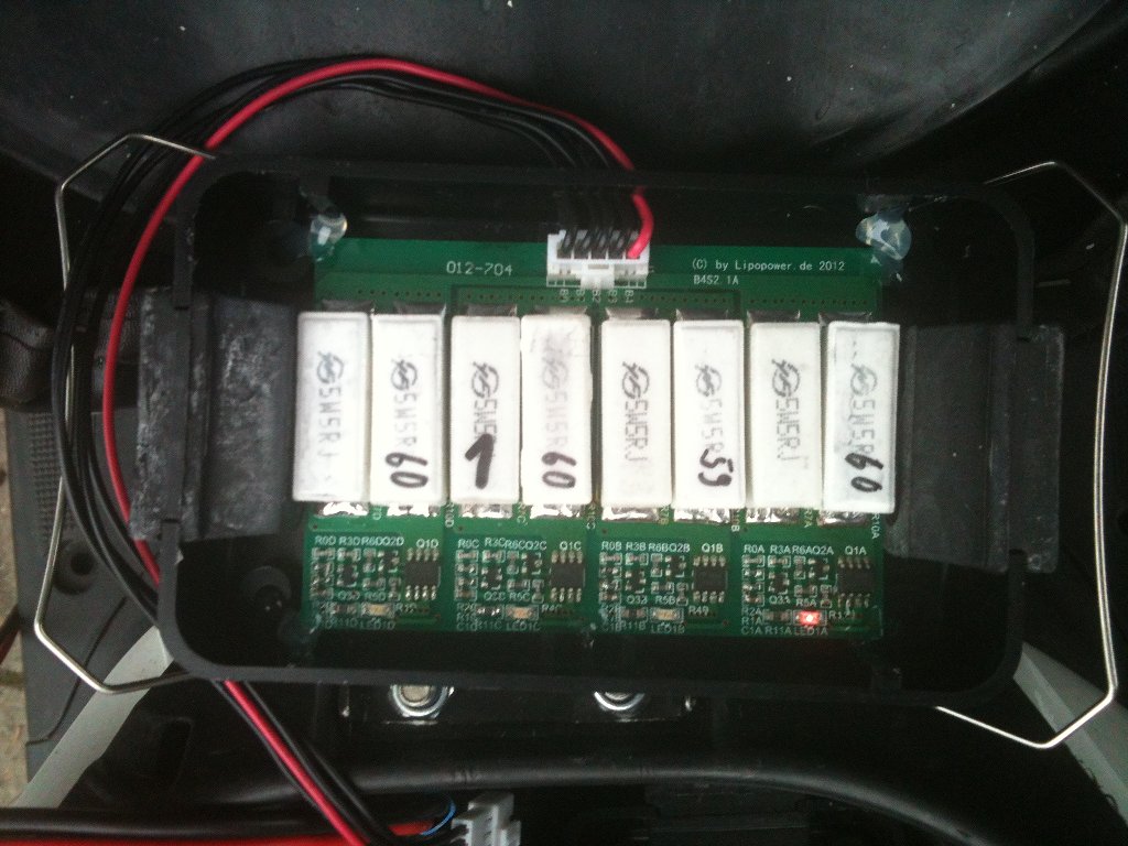 Das Umstecken der PQ-Stecker geht recht flott. Der Monitor zeigt dann auch in rot die schlechteste Zelle an.