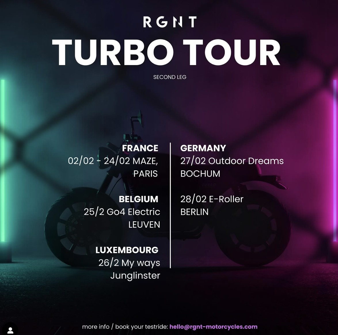 Was weder RGNT noch (nicht: Edrivecenter) E-Roller Berlin bislang gemerkt haben: die stehen immer noch nicht auf der Händlerliste auf der Einstiegsseite für die Turbo. Und die andere Seite mit Händlern auf der Website (aus SE-Zeiten) gibt es ja auch nicht mehr bei RGNT.ducatodriver hat geschrieben: ↑Fr 14. Feb 2025, 22:43Am 28.02.25 ist die RGNT Turbo bei E-Roller Berlin zu Gast, mit dabei Remo Klawitter auch bekannt als ZERO PIONIER.