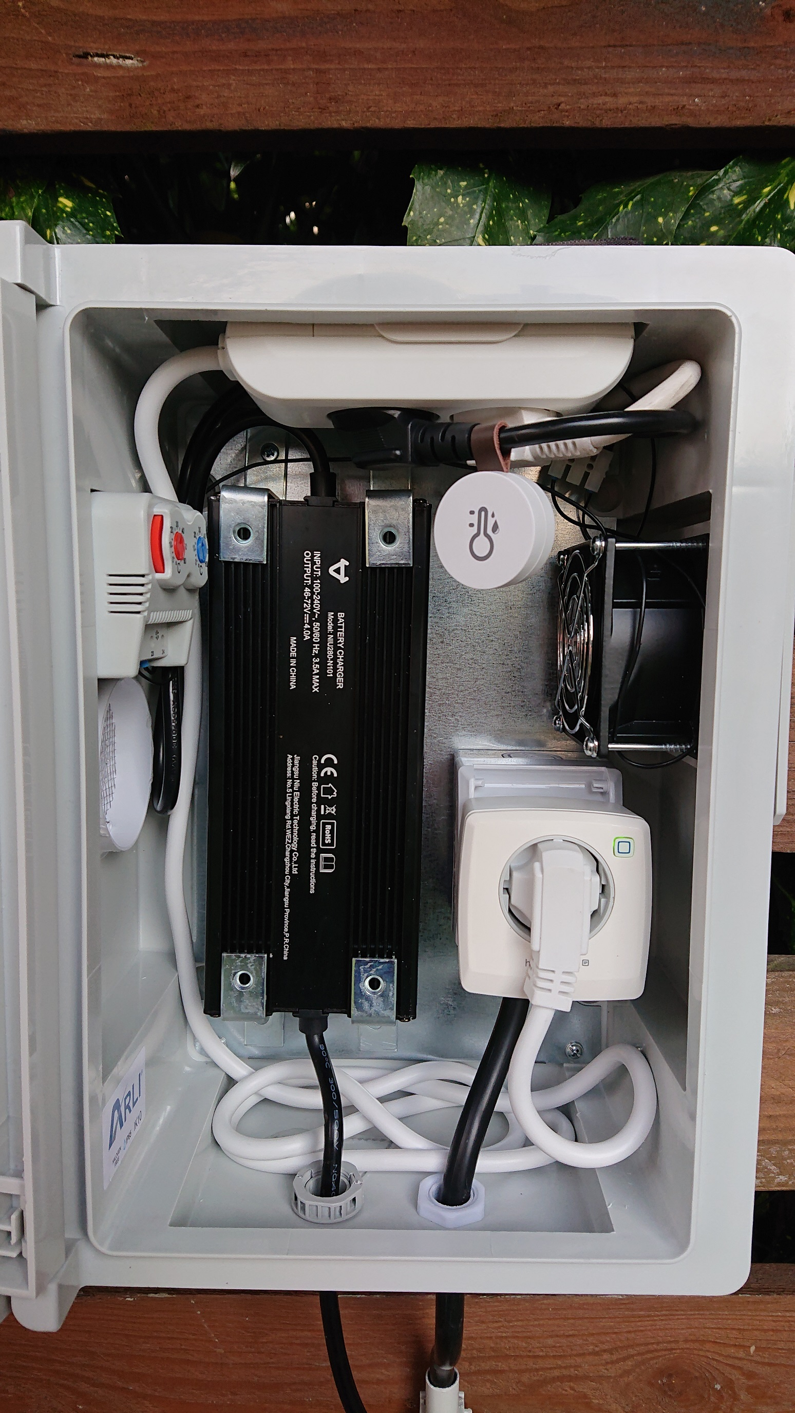 Wenn man die Box nachbauen möchte würde ich empfehlen den Lufteinlaß noch weiter unten und den Temperaturfühler in der Nähe vom Luftauslaß (oben) zu platzieren. Idealer Weise darüber. Bei der kompakten Bauweise ist das natürlich eine echte Herausforderung bzw. ein gelungener Kompromiß