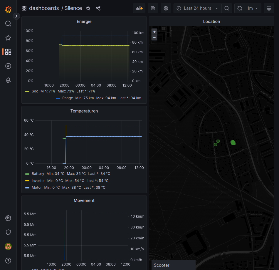 Das liest die Roller-Daten aus und schreibt diese in eine InfluxDb. Diese werte ich mit Grafana aus.