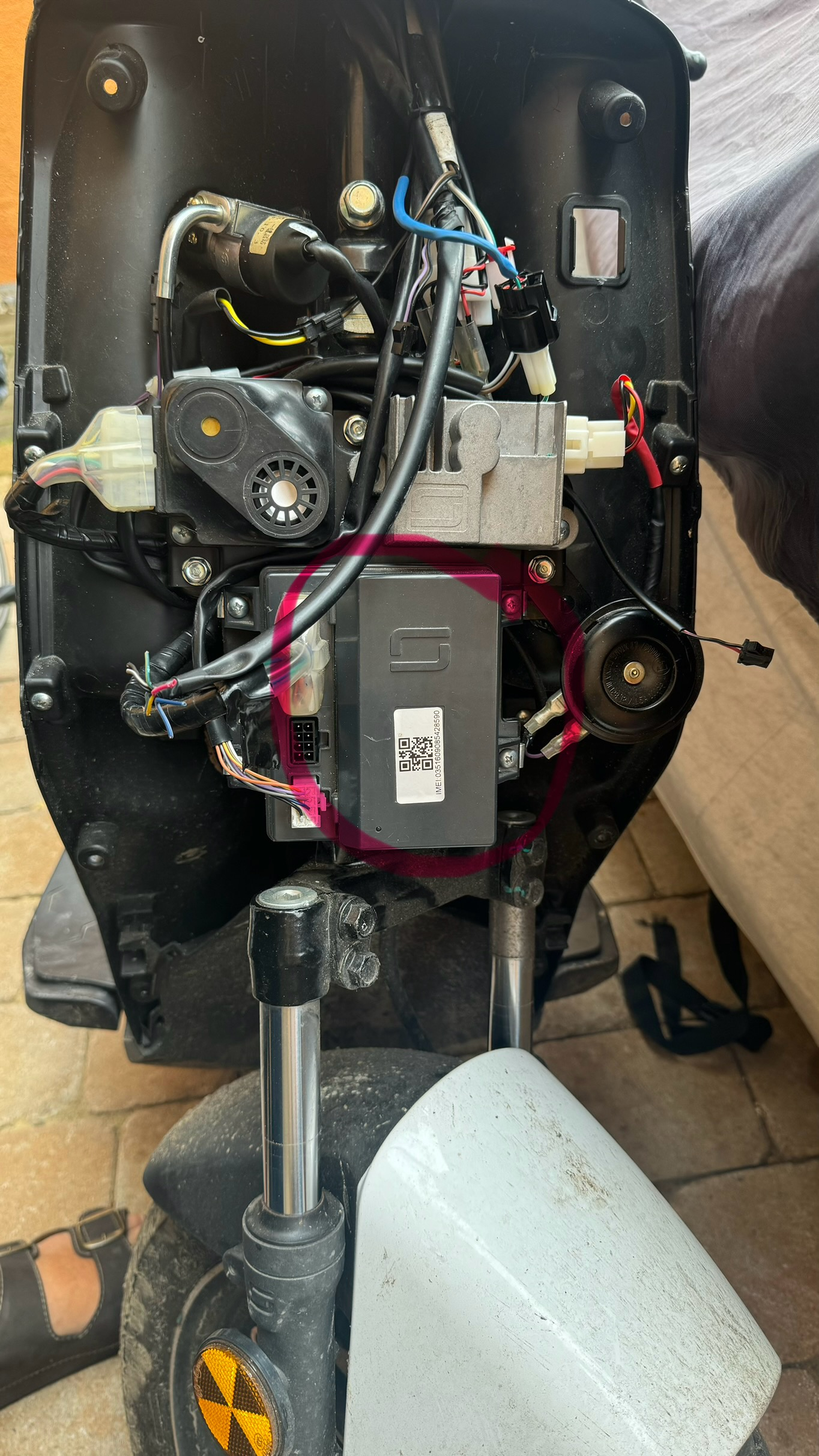 von in der Mitte ist eine steuereunheit wo die beiden Lenkerschalter rangehen und innen ist das Modul verbaut. auf dem Gehäuse steht die imei .