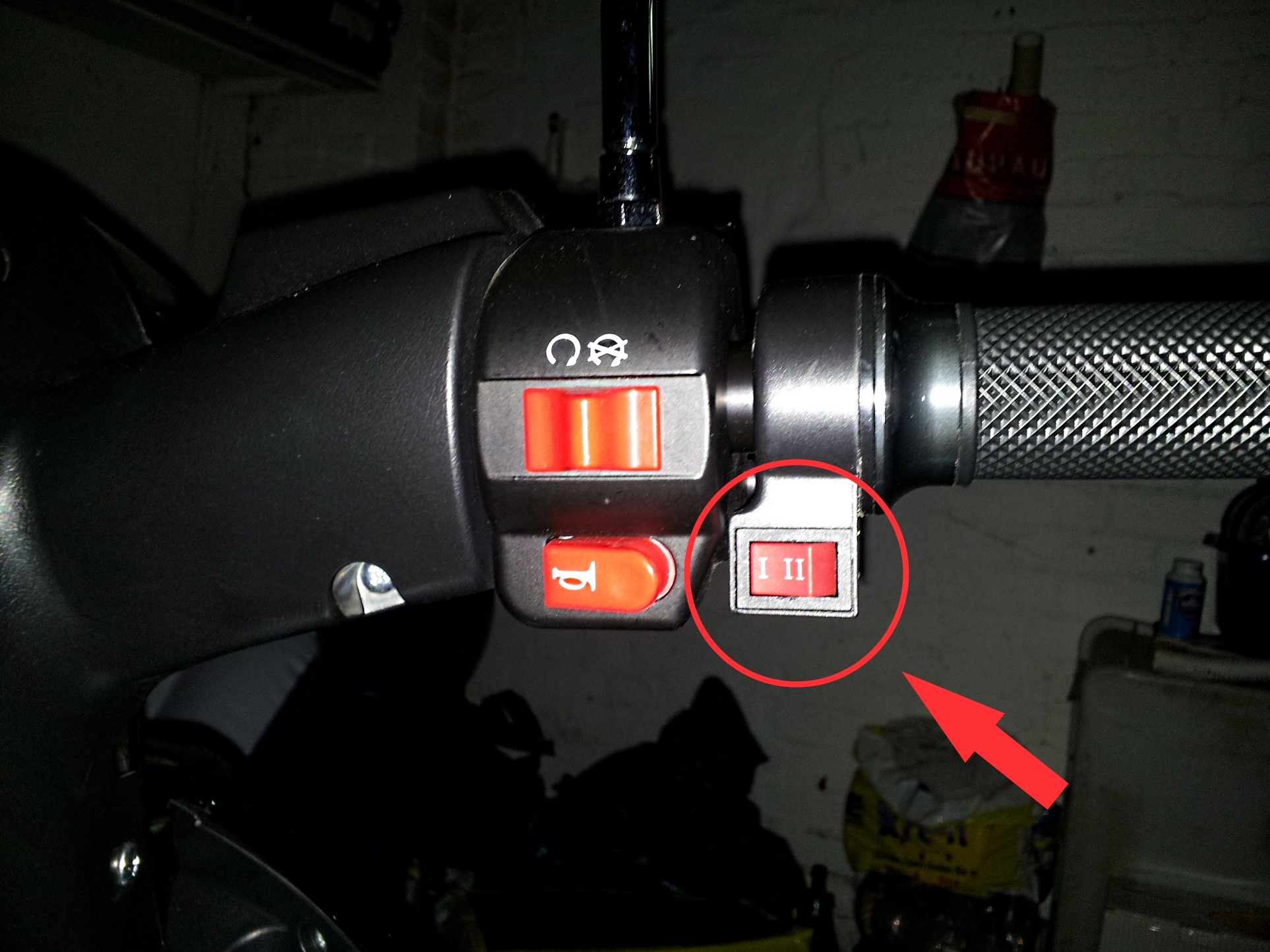 Meintest Du mit Leistungsstufen die Möglichkeit mit dem roten Schalter am Lenker siehe Foto (I / II) die Max. Geschwindigkeit zu wählen? Wenn ja, habe ich egal in welcher Stellung (I oder II) beim Anfahren keinen Unterschied gemerkt :( .