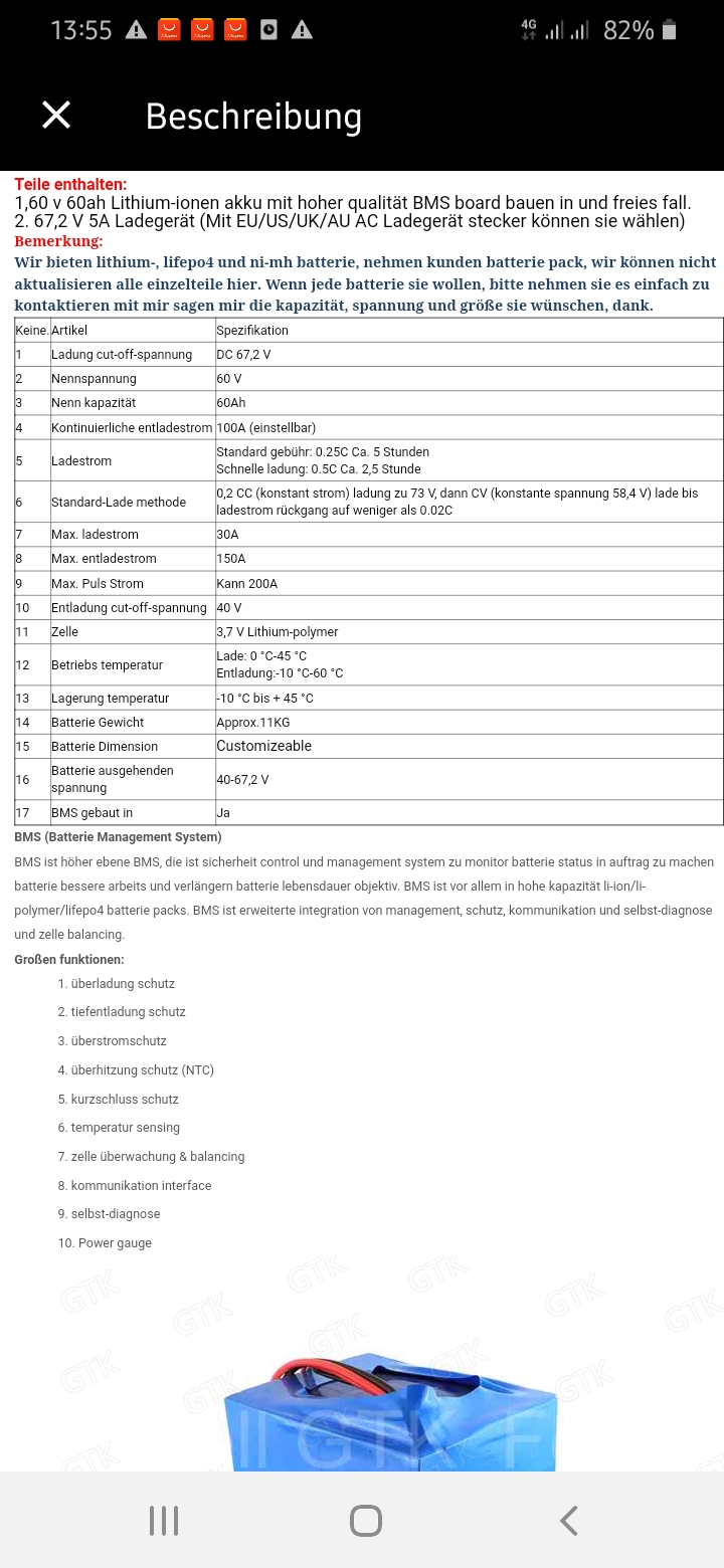 Etwas merkwürdig ist die Angabe cutoff Spannungen bei 67 Volt kann aber bis 73 Volt geladen werden.