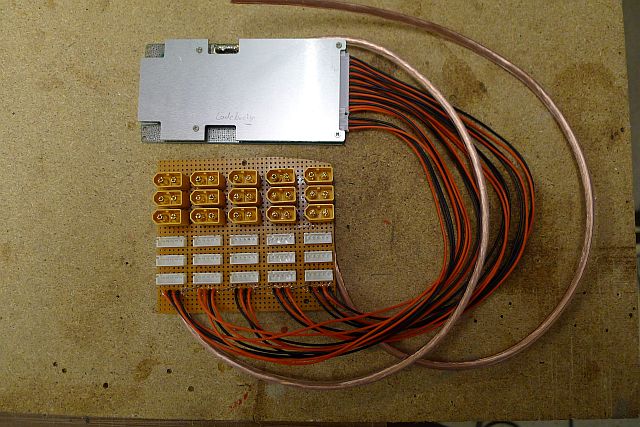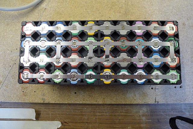 Jeder Akku ist ein 4S Akku und 5 in Reihe ergeben 72 Volt.