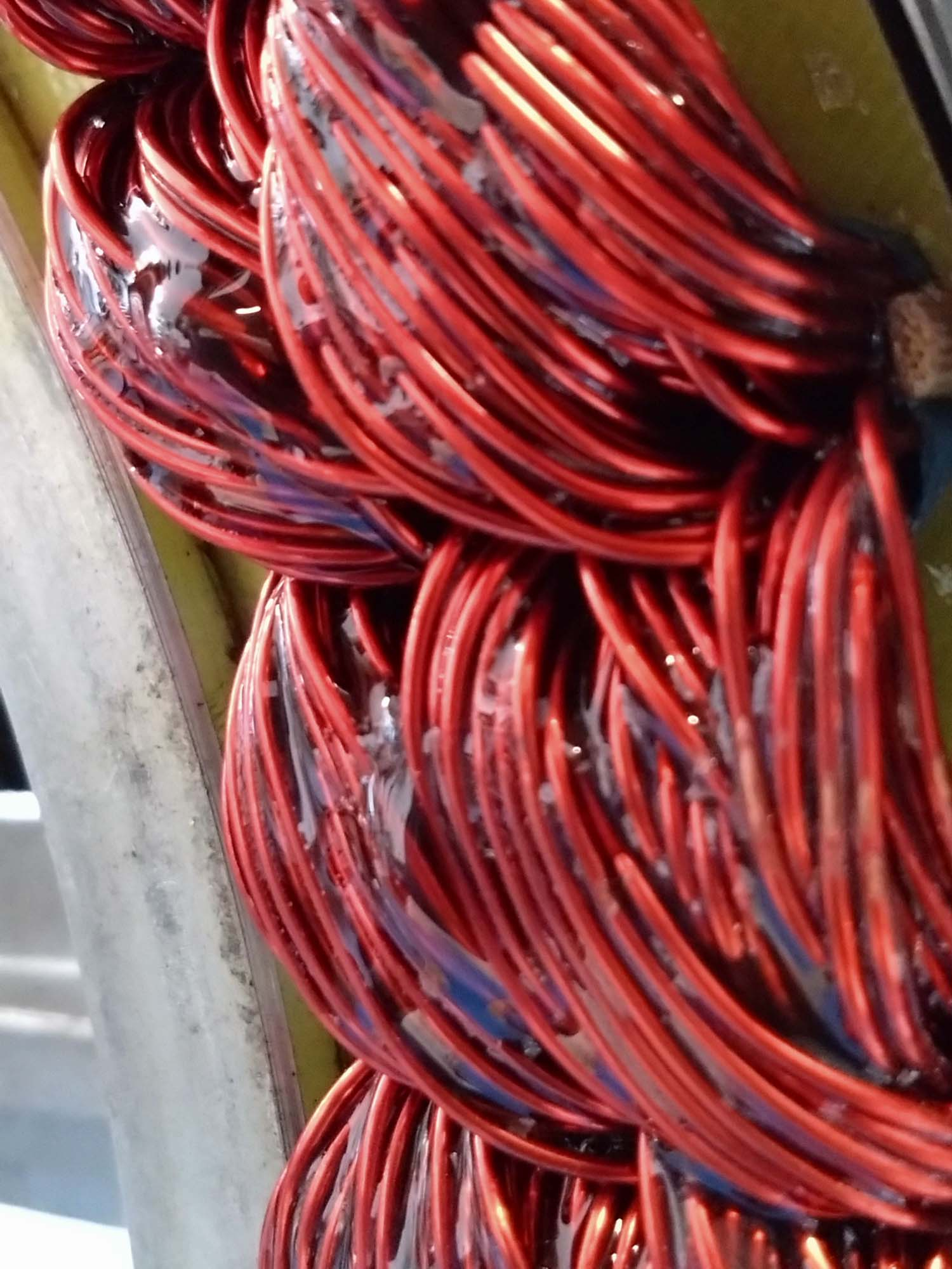 Beim Elektromaschinenbauer habe ich mir Glasfaser-Isolation, 0.5 und 1.5 geholt, Polyesterfolie, Etwas herkömmliche Isolation, Epoxylite (2 Komponentenlack) EIP5600 / 5621 und Dichtmasse für die Lagerschilde geholt. Zudem vor Ort die neuen Lager und Wellendichtungen montieren lassen. Stator und Rotor waren immer zusammen. Damit mir kein Lack in den Spalt geht hab ich den mit Poliesterfolie gefüllt. Mit 2 Heizöfen hab ich das ganze auf etwa 50° geheitzt und dann den Zweikomponenten Lack mit ner 20ml Spritze über die Wicklung geträufelt. Beim Beträufeln hat sich gezeigt, der Lack ist fast immer sauber der Spule gefolgt. Ev. wäre die Übung mit der Folie im Spalt nicht nötig gewesen.