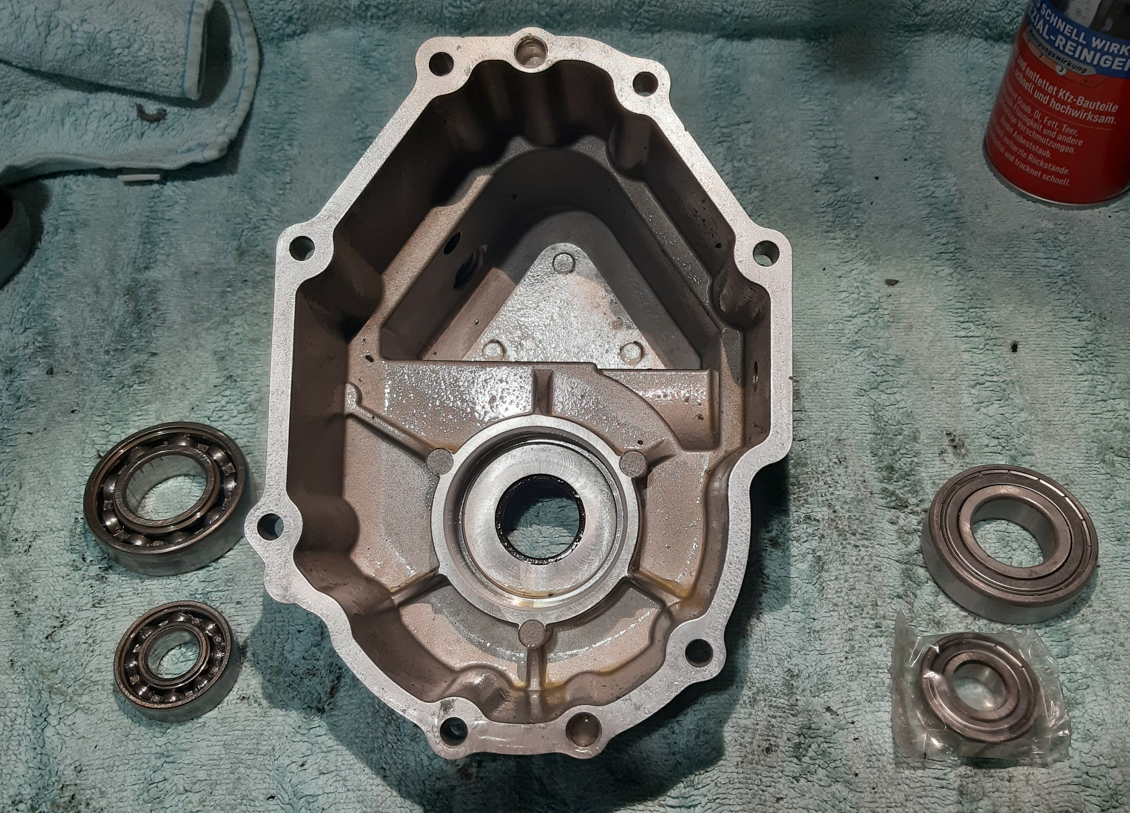 Am Motor selbst muss man das Lager rechts neben dem Zahnrad abziehen (Motorblock um das Lager warm machen) und mit etwas Gefühl und dem richtigen Werkzeug funktioniert das wunderbar.