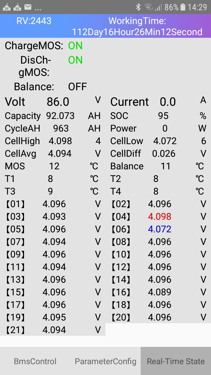 ich nutze das ANT BMS mit 24s BMWi3 Batterien völlig problemlos und hab heute mal wieder die BMS Einstellungen angeschaut.