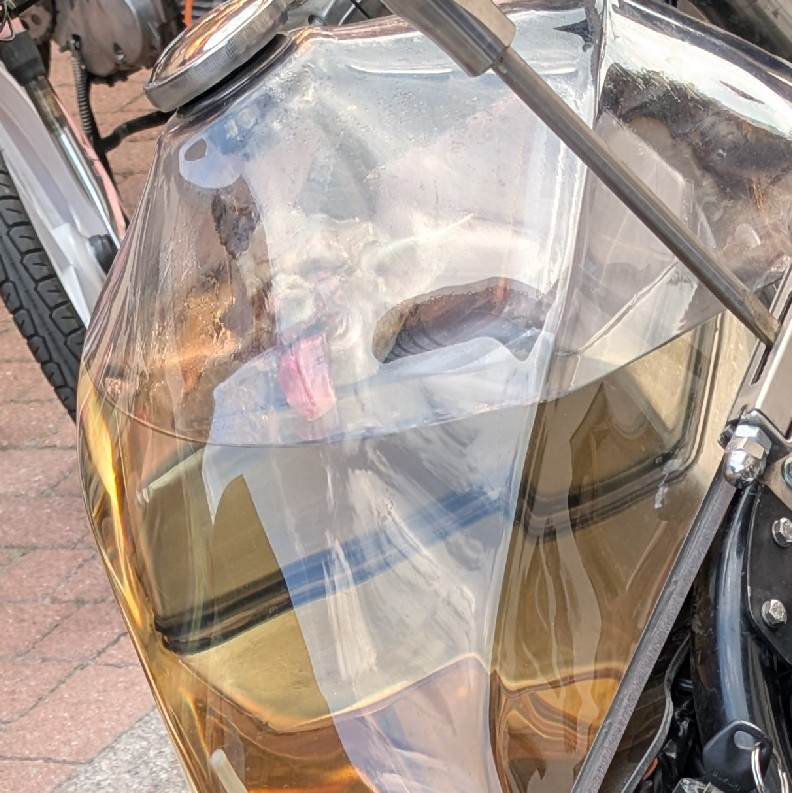 Der durchsichtige Tank ist ja praktisch, Tankanzeige unnötig.