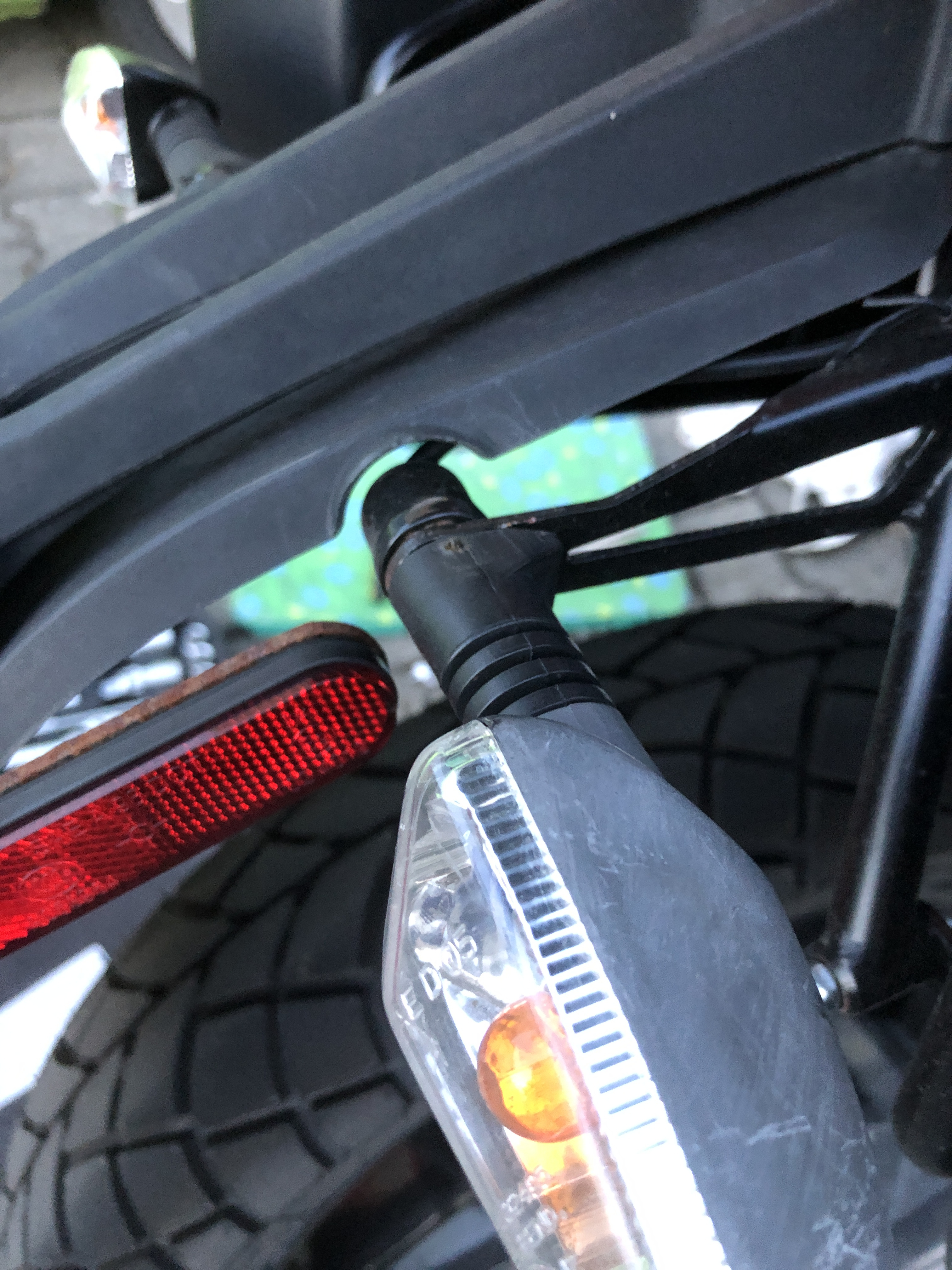 Wieder montiert zeigte sich nicht nur der nach vorn gewanderte linke Blinker, hier zuerst der rechte am Sollplatz: .