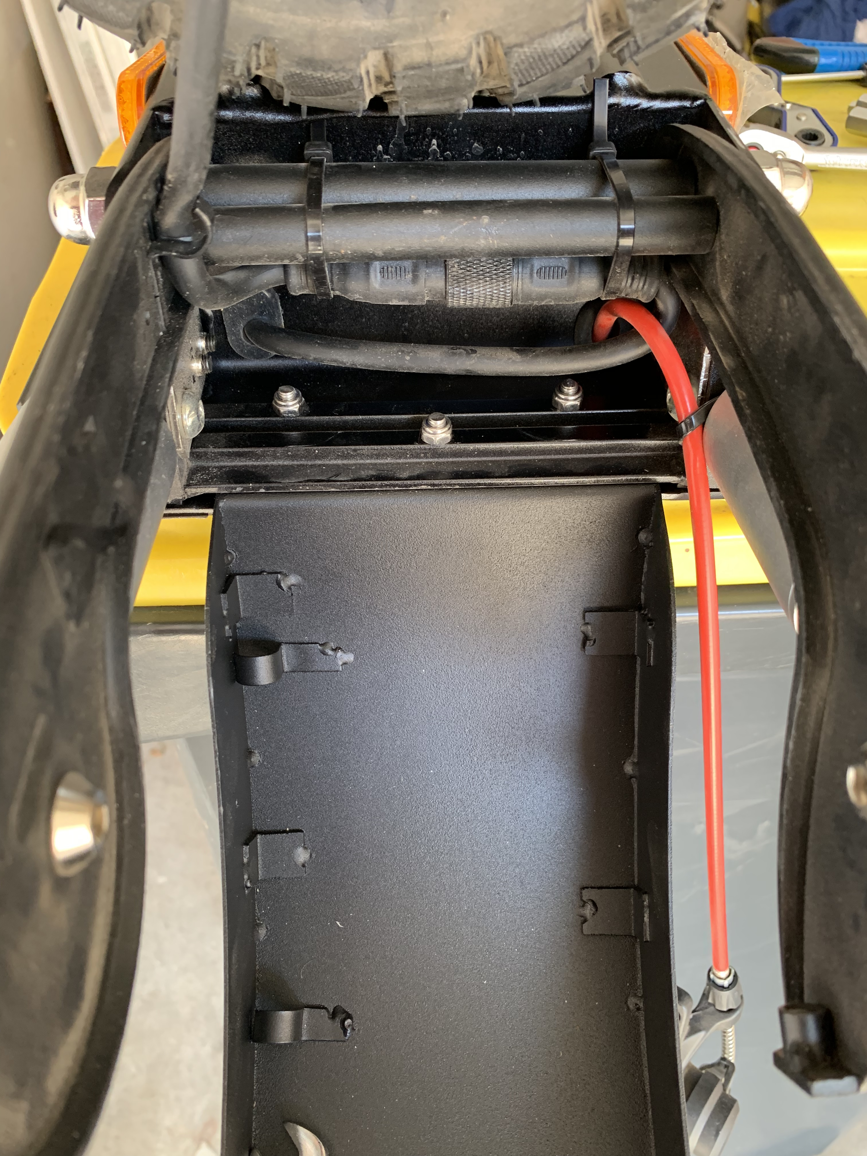 Vorige Woche fing mein Exit Cross hinten an zu Knarzen als ich losfuhr. Ich dachte zuerst das Nummernschild wäre lose. Bei genauerer Prüfung stellte ich fest,das es vom hinterem Schutzblech kam. Bei jeder Bewegung des Bleches kam das Geräusch. Ich machte ein kleines Video und schickte es zur RMA Abteilung. Keine halbe Stunde später kam die Antwort, das ein neues Schutzblech zugesendet wird.