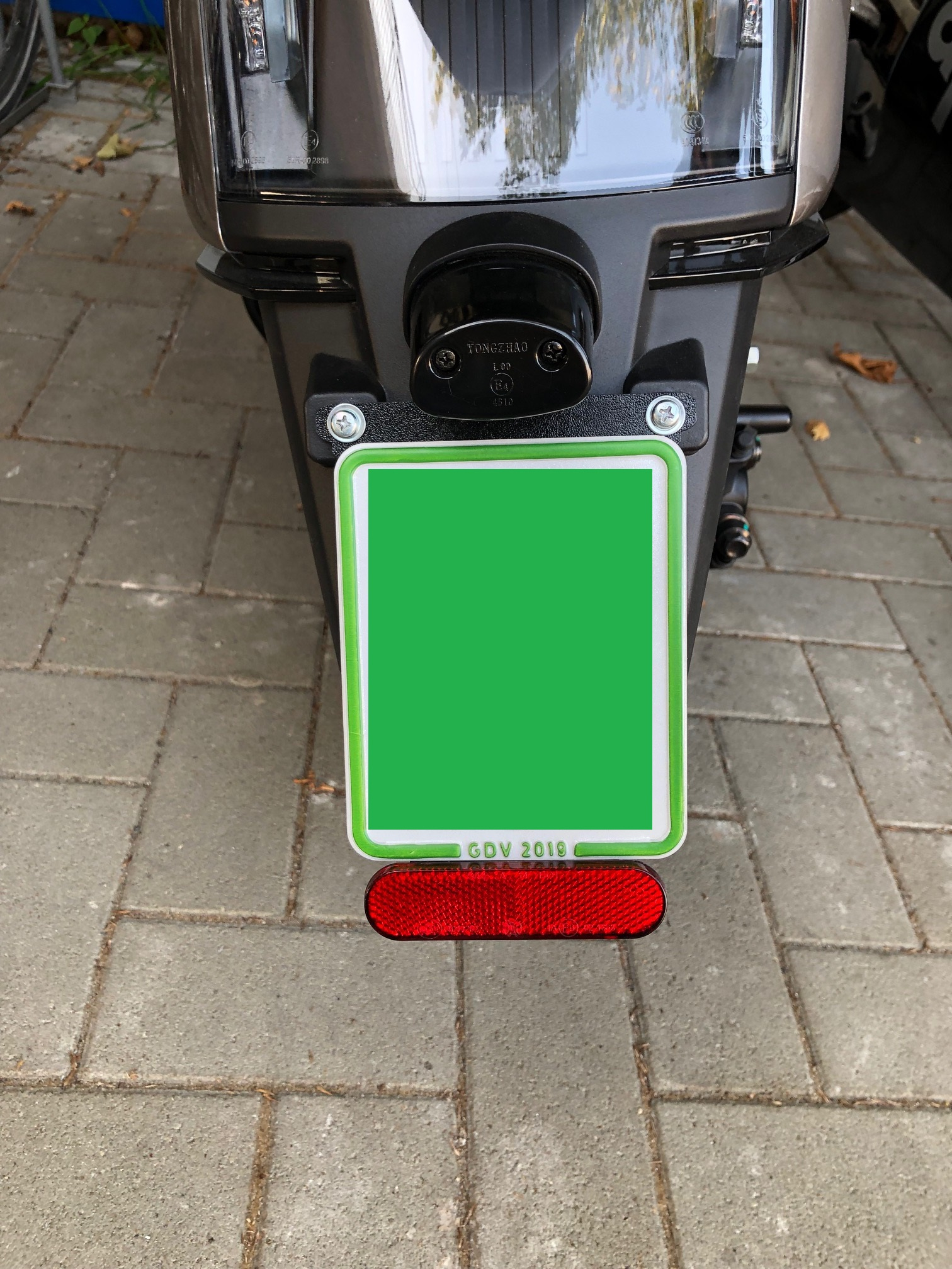 durch die Abmessungen des Versicherungskennzeichen in DE ist der untere Reflektor der Cux verdeckt, so dass ein beliegender Halter für die Anbringung des Reflektors am Soziusgriff vorgesehen ist. Da ich jedoch auf Gepäckträger und Top Case umgebaut habe, könnte der ursprüngliche hintere Reflektor entfallen, da am Top Case selbst einer vorhanden ist, jedoch möchte ich auch ab und an ohne Top Case fahren und somit würde der Reflektor dann wieder fehlen.