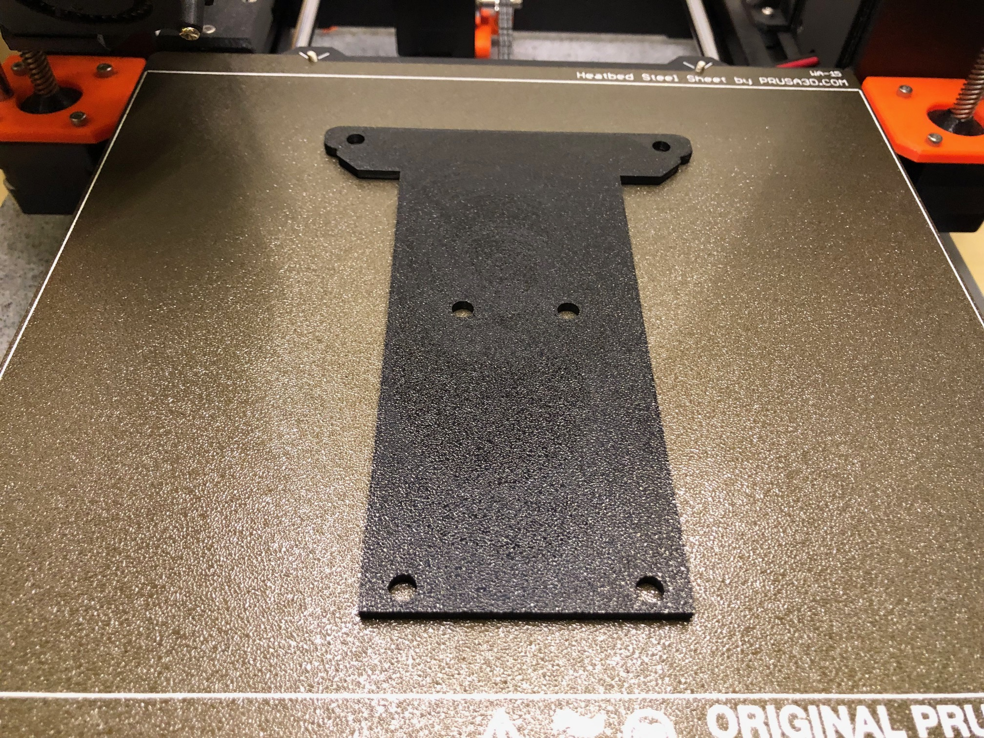 Den Halter habe ich auf meinem originalen Prusa MK3 in schwarzem ABS gedruckt, in PETG wäre es auch möglich, von PLA nehmt jedoch bitte Abstand.