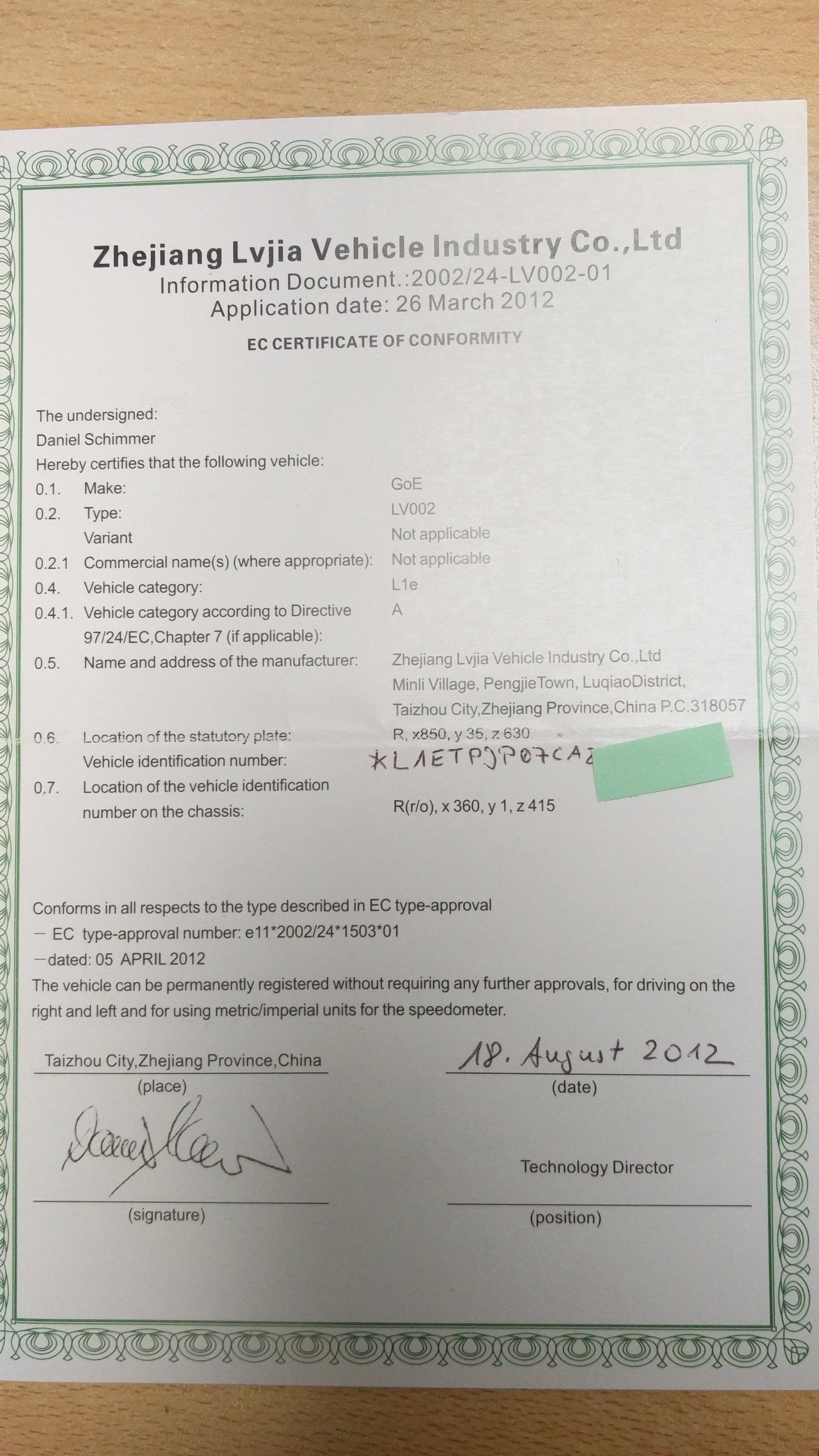 ich habe sehr günstig einen 45er E-Roller erworben (ohne Papiere). Auch wenn ich eigentlich nur ein paar Teile verwenden wollte bin ich doch am überlegen neue COC-Papiere zu beantragen (wenn es möglich ist). Das Problem: Ich kenne den Hersteller nicht. Die FIN beginnt mit L5Y, gefolgt von AV49A9. Hat einer eine Idee was das sein könnte? Ist ein gelber Retro-Roller. Bilder sind schwierig zu machen aber kann ich nachreichen. Gibt es evtl. eine Übersicht über alle Modelle? L5Y scheint ja auf sehr viele China-hersteller zuzutreffen.