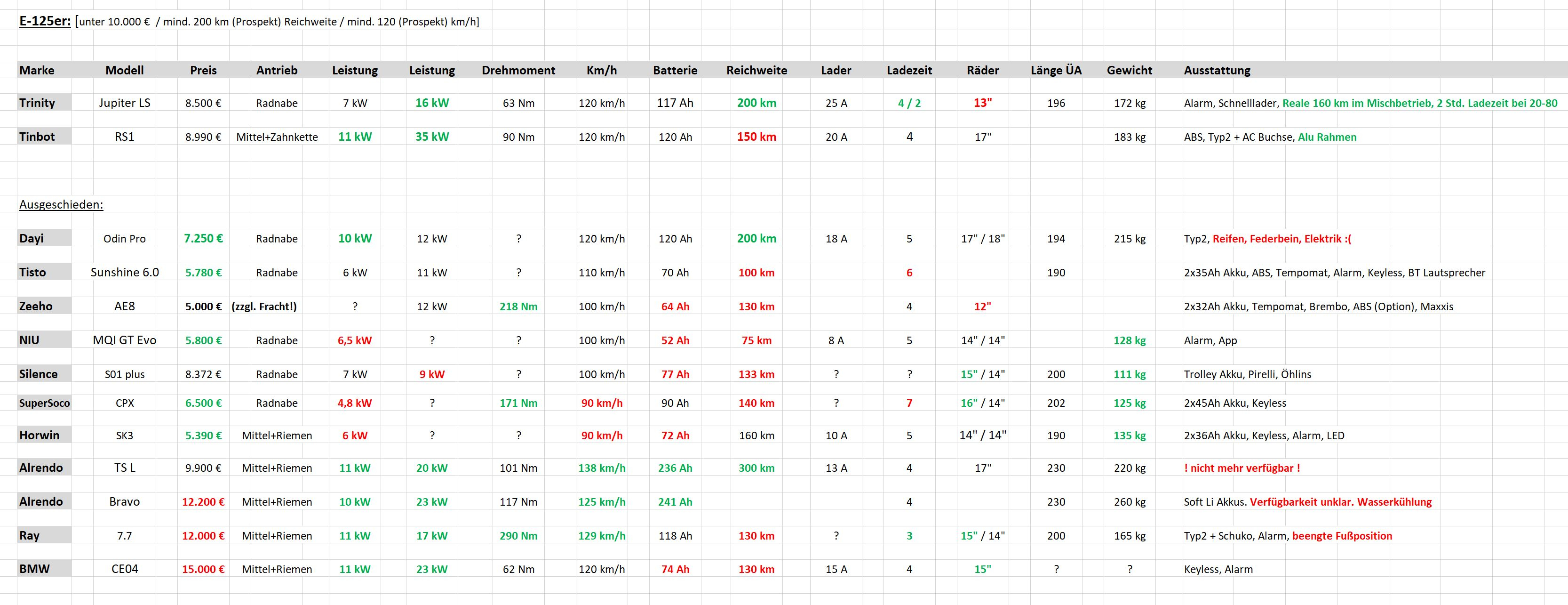 aber immer, wenn man bei denen hier ins Detail geht, dann sprechen Dinge dagegen - wie zB Licht und Regenanfälligkeit beim Seat, viele Mängel beim Tisto, Kette beim Horwin usw usf.. Klar, die eierlegende Wollmilchsau gibt es nicht und die suchen wir auch nicht.