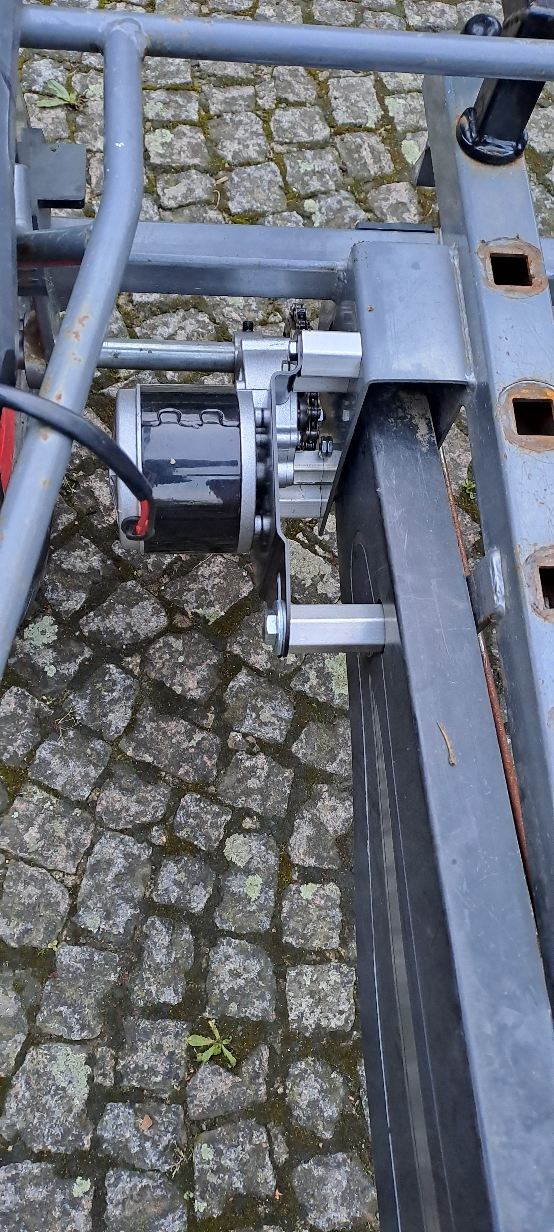 Angedacht war zuerst ein Mittelmotor aus einem E-Bike samt Drehmomentsensor, da aber nichts günstiges im näheren Umfeld zu finden war, habe ich erst mal einen Umbausatz von Vevor mit 250W 24V Bürstenmotor mit angeflanschtem Getriebe für 65Euro gekauft.